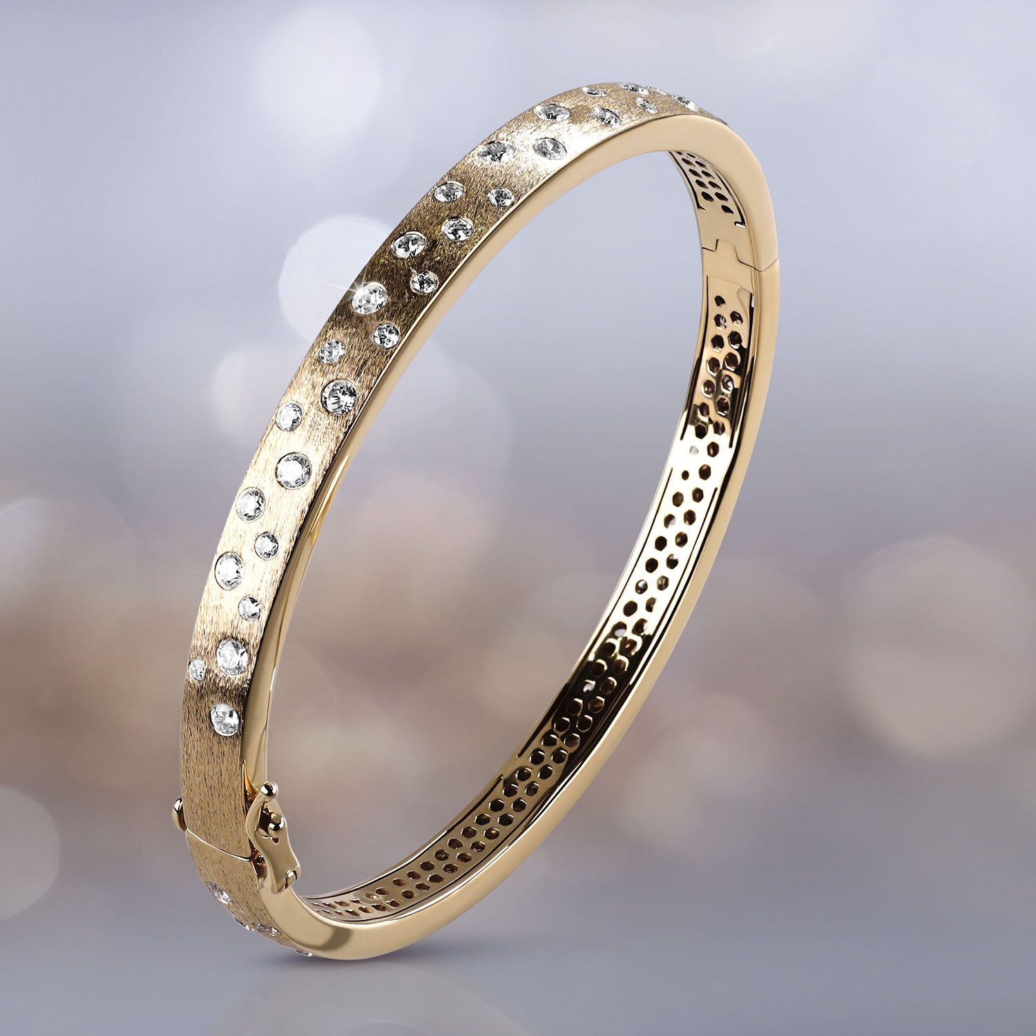 Exquisite. Absolutely beyond gorgeous in person. This is the perfect diamond decked stud bangle for the jewelry lover. The pictures don’t do it justice. It is a bit oversized, which is great for stacking…