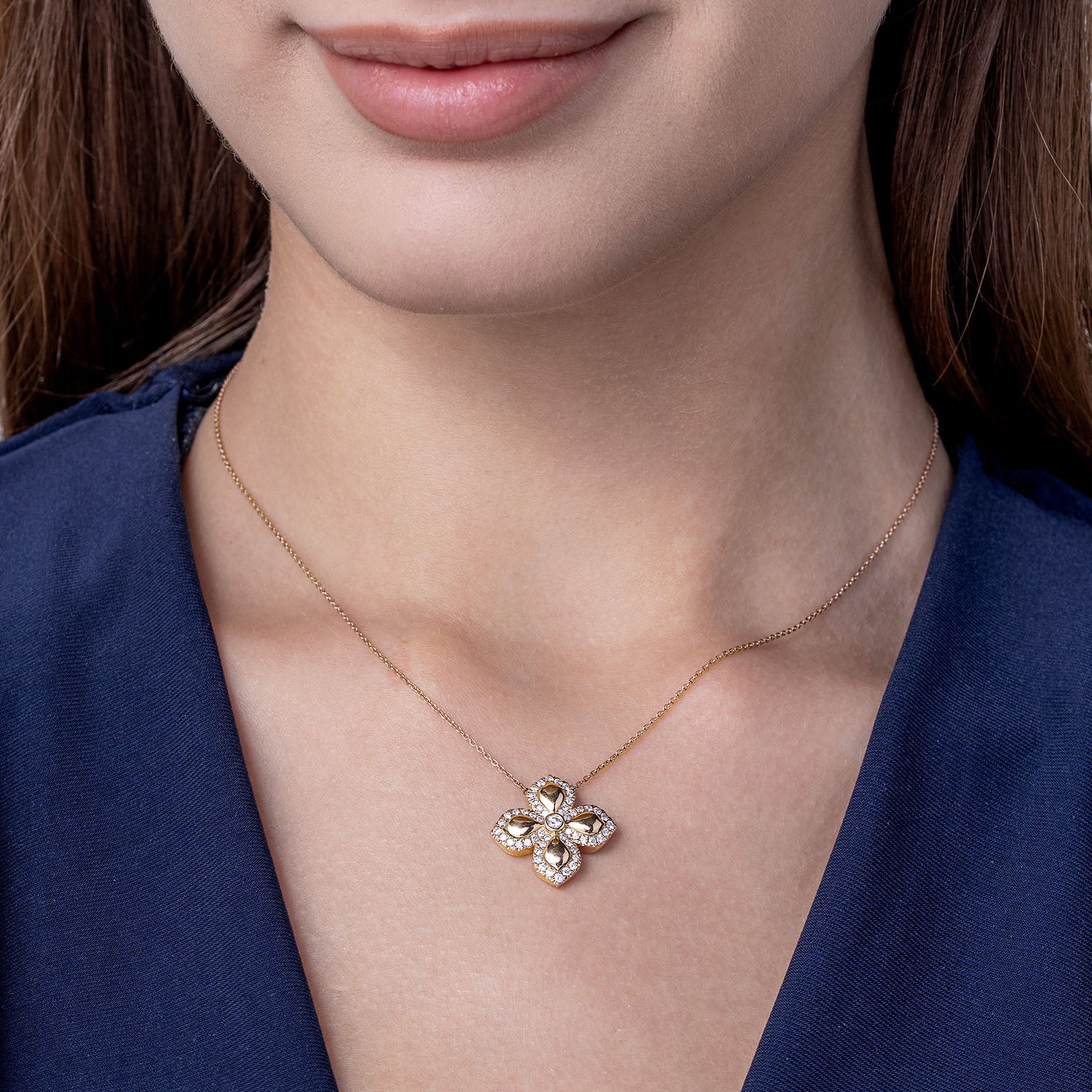 These earrings are gorgeous. I am very pleased with them and received expert and very attentive customer service from Customer Care. I am going to order a station 16 inch necklace with the flowers customized to match the earrings( yellow gold with diamond in the center with satin finish petals. I would like to communicate with the Customer care again on this custom necklace.