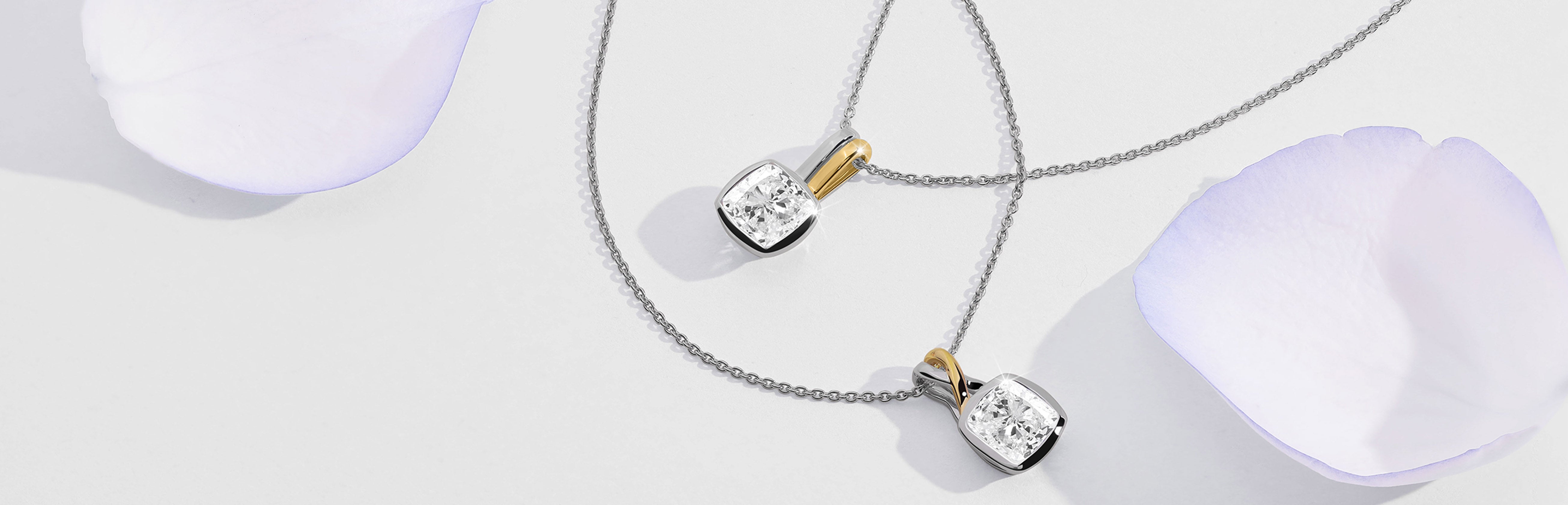 Discover the timeless beauty of cushion cut diamond jewelry. Each piece features the soft, rounded edges of the cushion shape, designed to enhance brilliance and elegance. Available in natural and lab-grown diamonds.