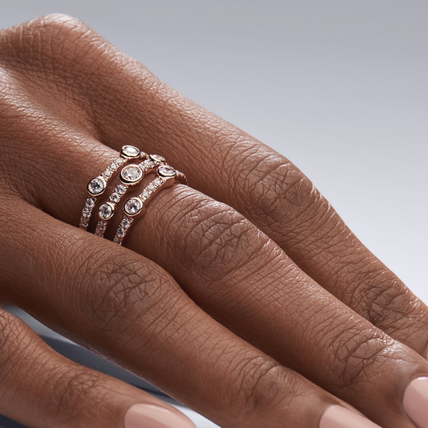 Show LessThe 3-Tier Smitten Ring is a symphony of diamonds, meticulously orchestrated to create a captivating visual masterpiece. Each tier features a unique arrangement of round diamonds, w. . . Show More