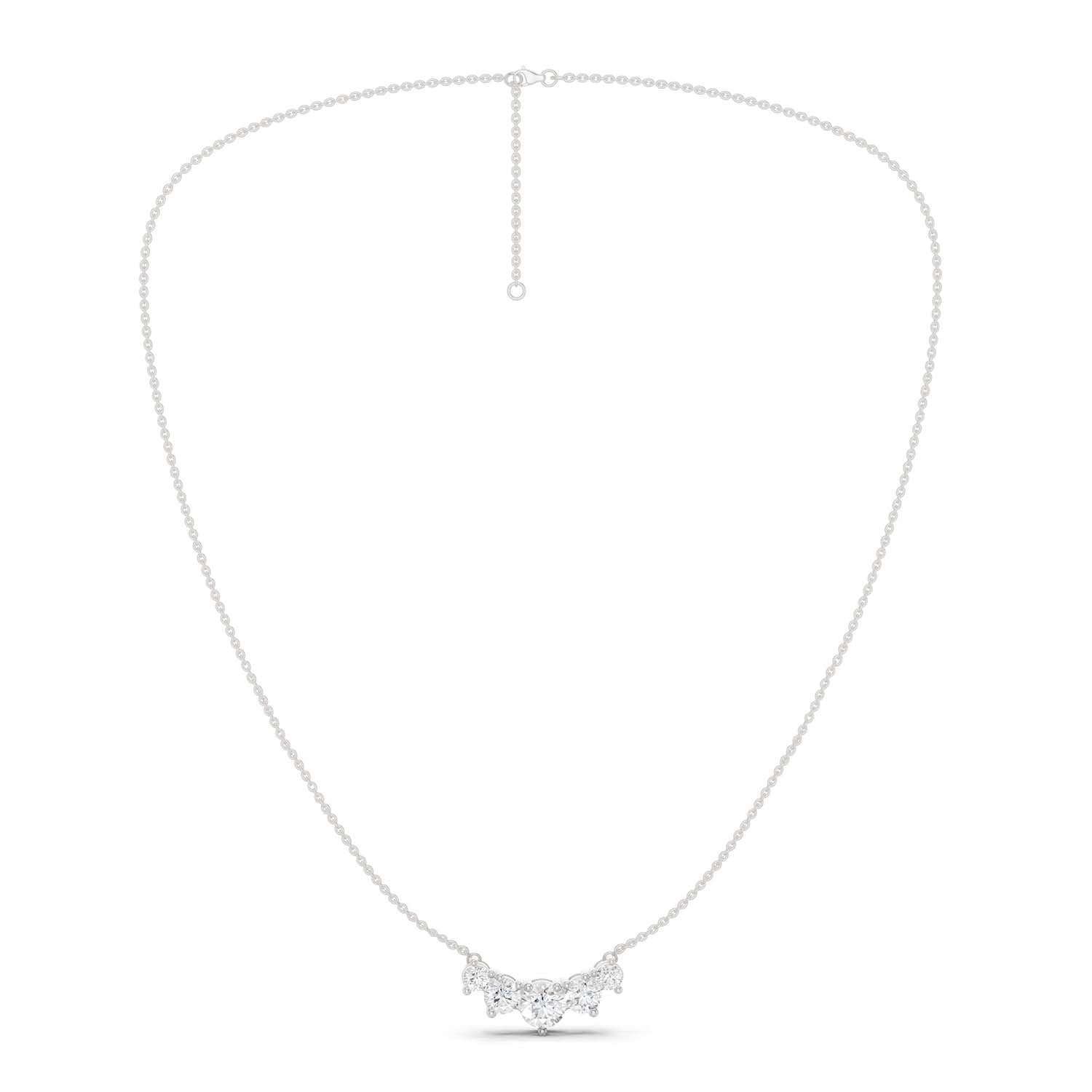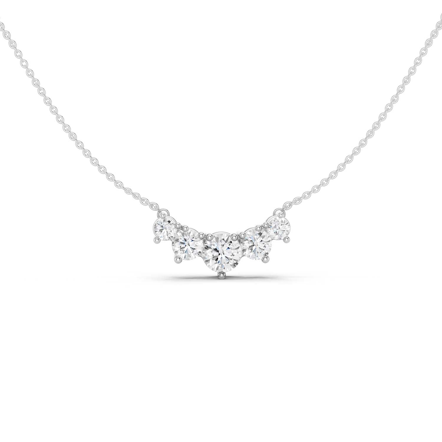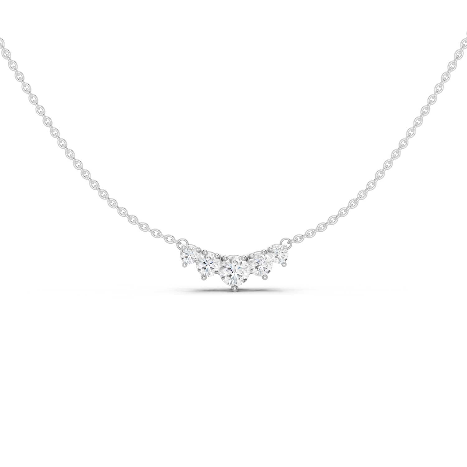 This petite, curved diamond necklace features five graduated lab-grown diamonds that rest beautifully at the collarbone. Its subtle sparkle brings the perfect pinch of charm to casual outings, special evenings, and everything in between.
