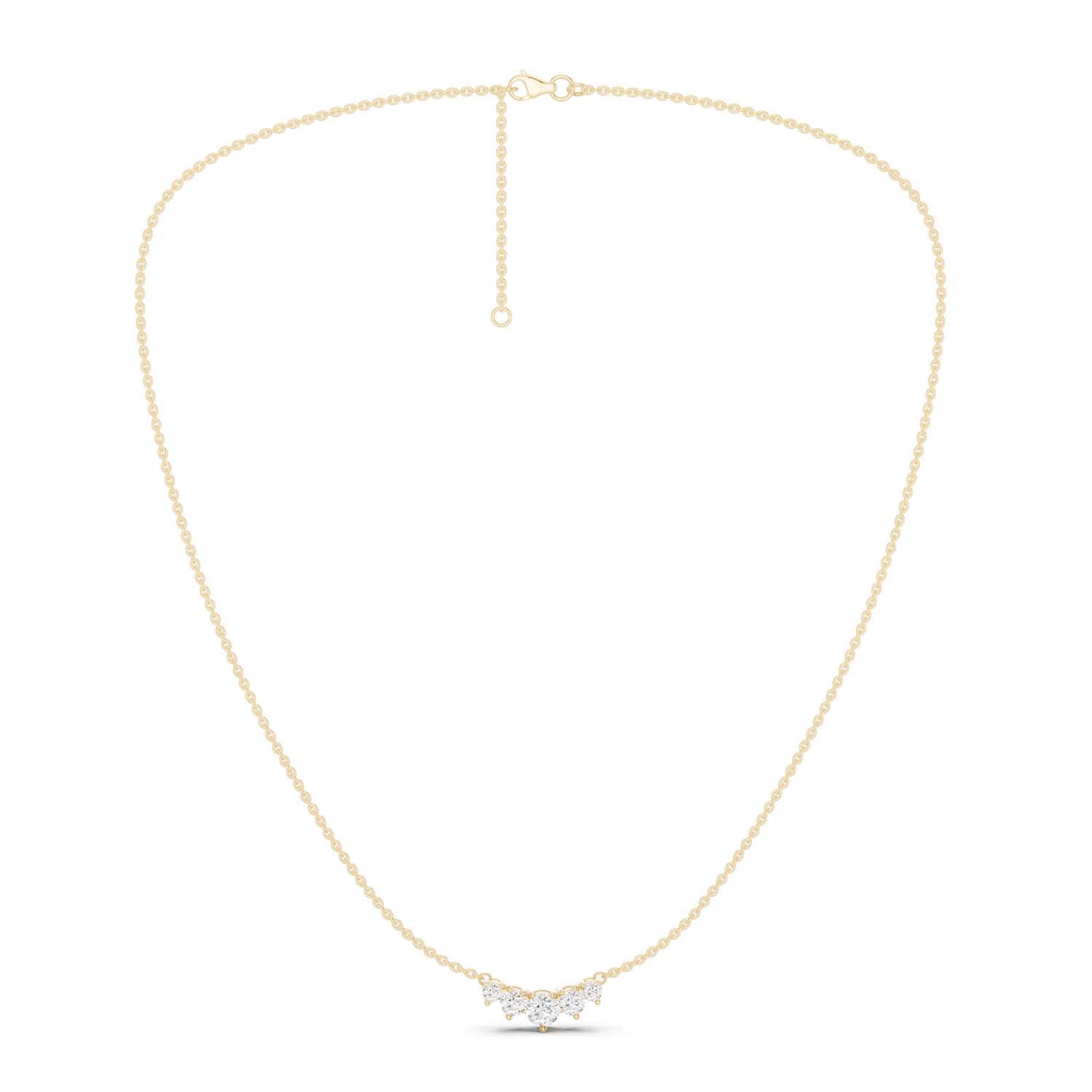 Read MoreThis petite, curved diamond necklace features five graduated lab-grown diamonds that rest beautifully at the collarbone. Its subtle sparkle brings the perfect pinch of charm to casual outings, special evenings, and everything in between.