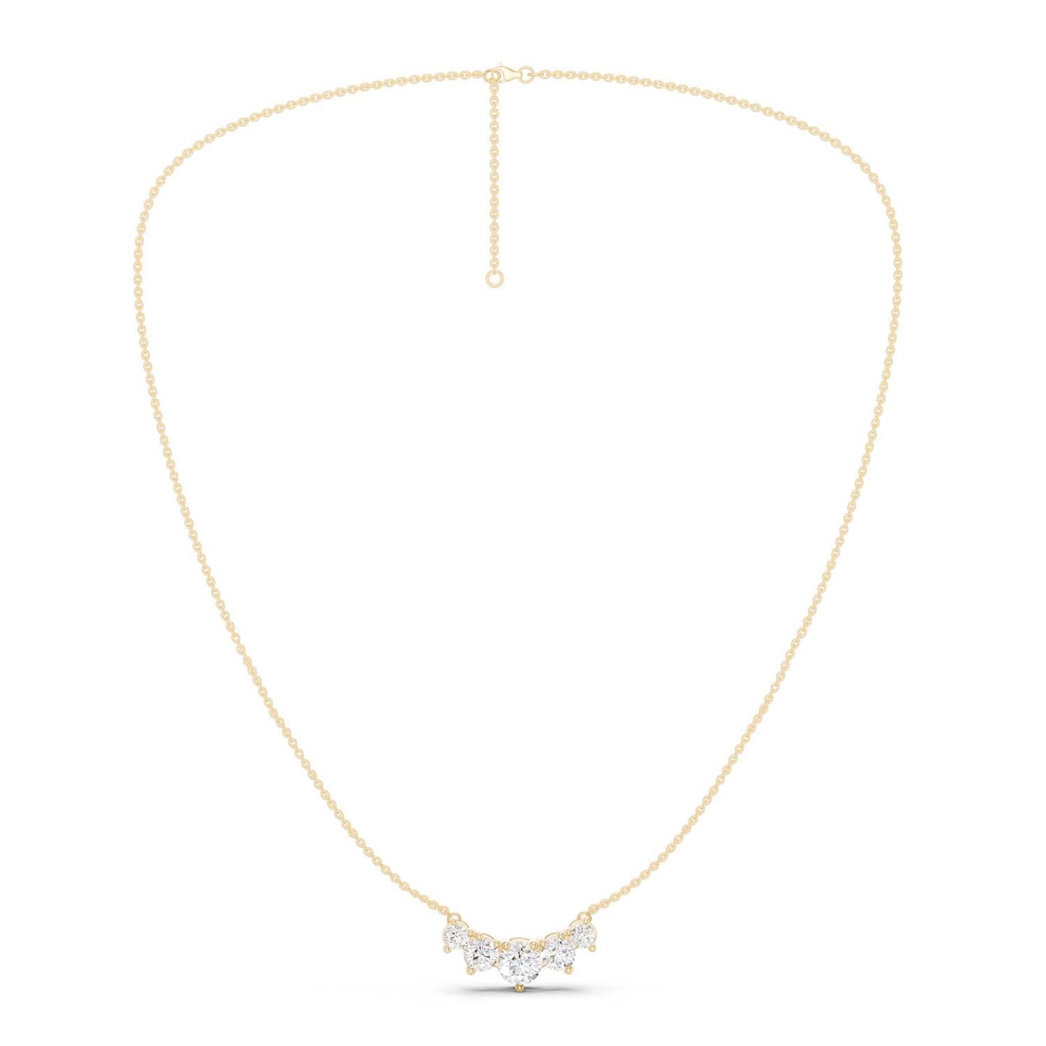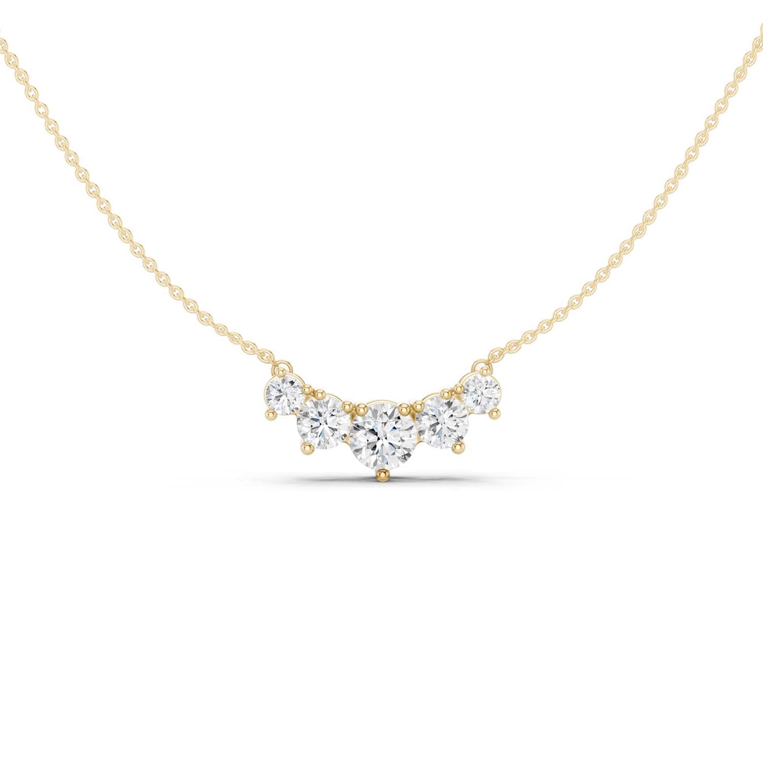 This petite, curved diamond necklace features five graduated lab-grown diamonds that rest beautifully at the collarbone. Its subtle sparkle brings the perfect pinch of charm to casual outings, special evenings, and everything in between.