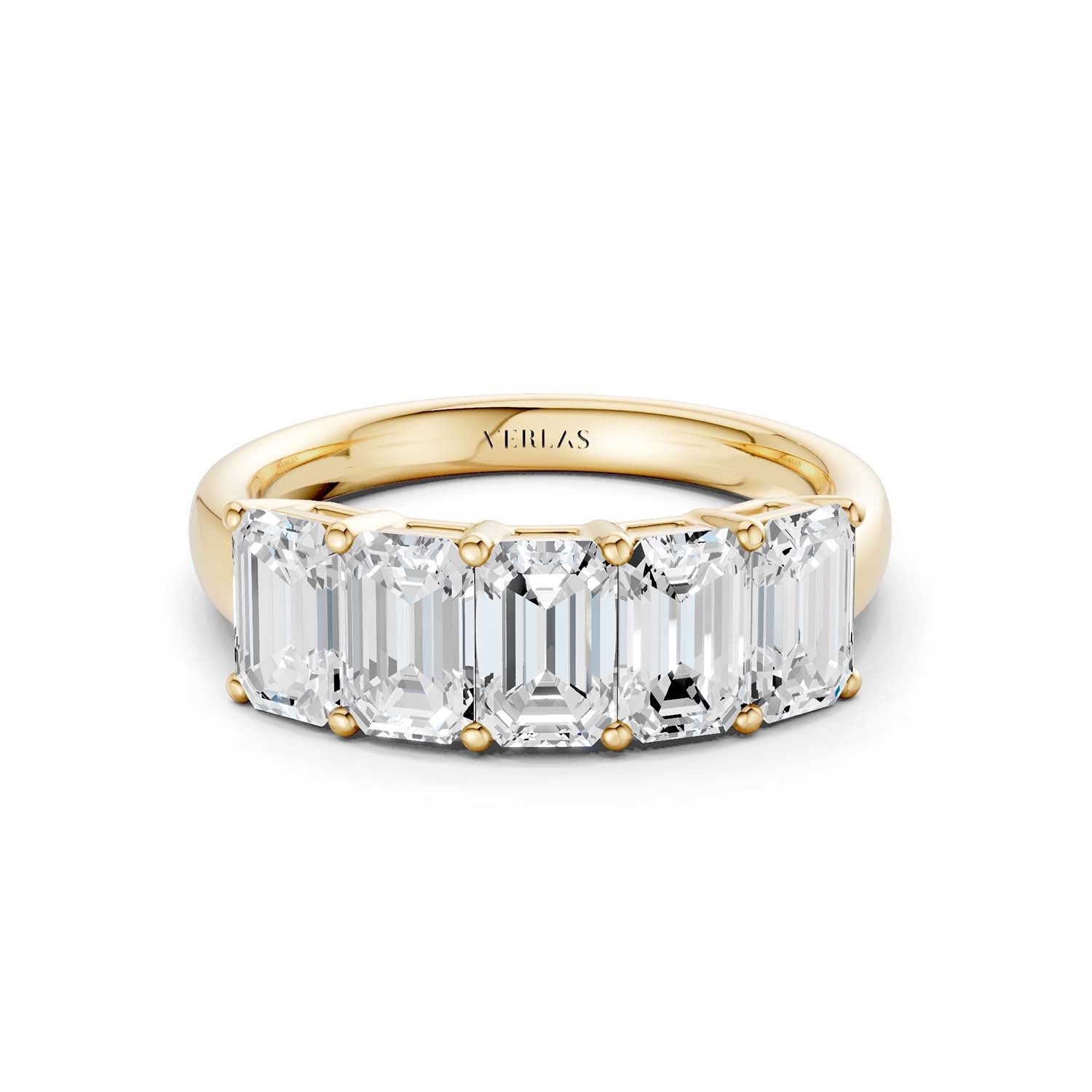 Featuring 5-scintillating emerald-shaped lab-grown diamonds, this 5-stone ring beautifully demonstrates your taste with its elegance, making a stylish appearance. Set in a shared prong setting, the ring exhibits an enduring style and is perfect for making moments memorable.