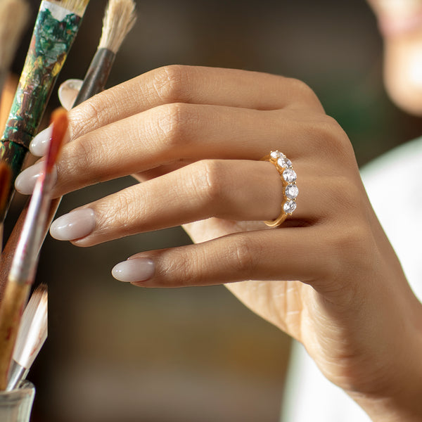 A beautiful and classic 5-stone lab-grown diamond ring consists of five brilliant cut diamonds set delicately in a single row in a shared prong setting. This stunning ring is a perfect gifting choice for your special someone on occasions such as an anniversary or birthday.