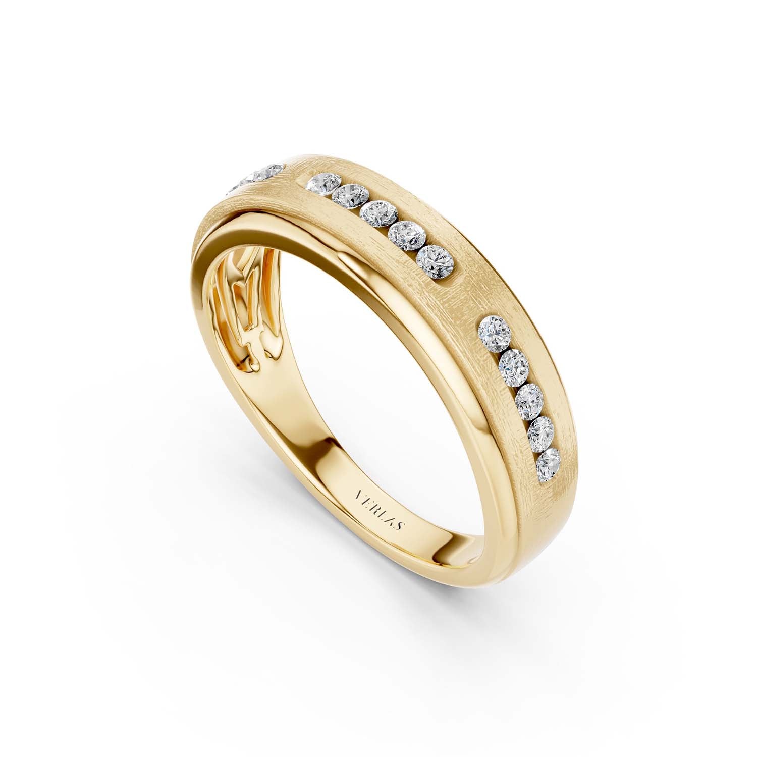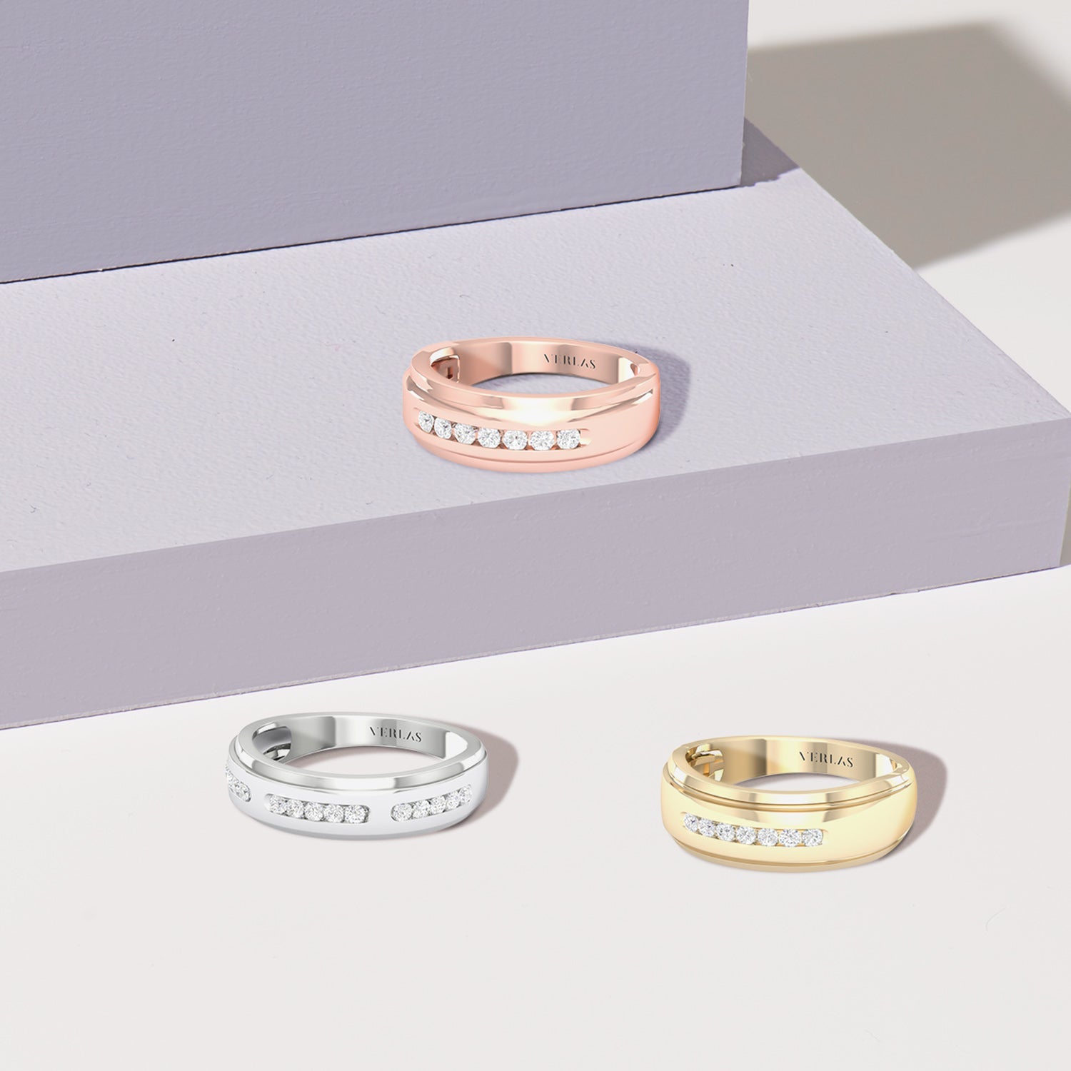 Experience the glamour of the 3-Trail Round Diamonds Nick Set Band. This stunning band features three rows of round diamonds set in a nick pattern. Crafted in solid gold, the design is both elegant and eye-catching. This band is a testament to your unique personality and impeccable taste.