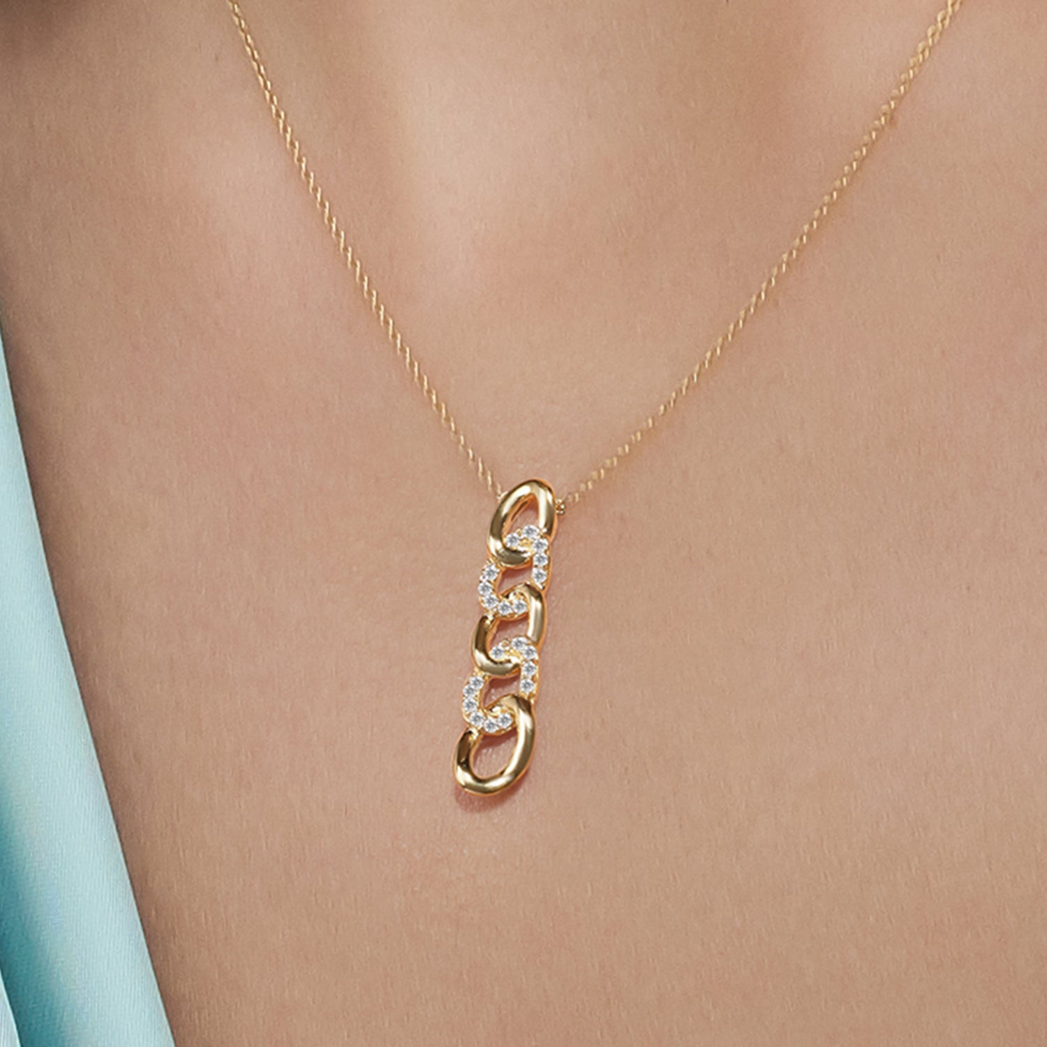 This showstopper features a cascade of diamond-studded rings for a bold and unique look. Beautifully crafted in gold, the interlocking loops make this necklace an excellent gift.