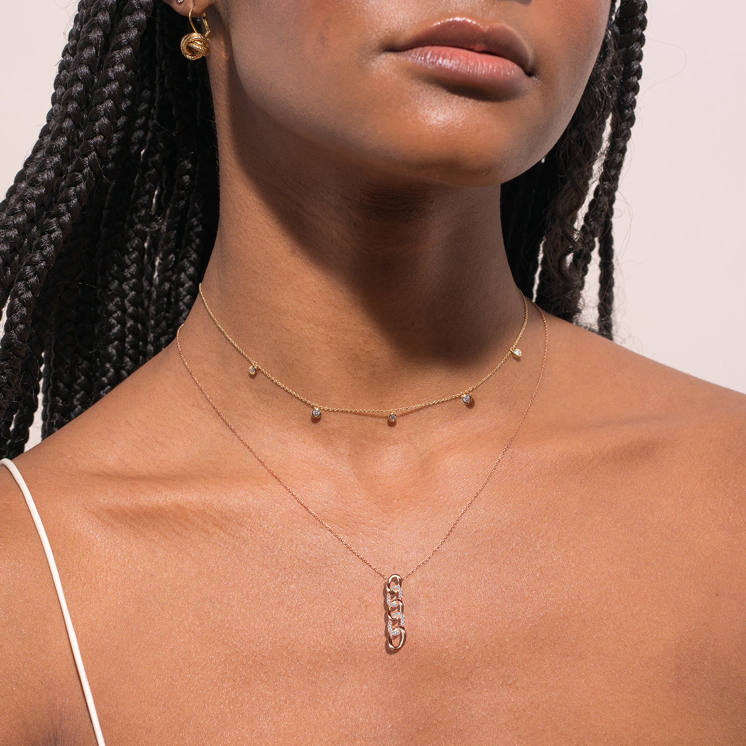 Symbolizing deeper connections, Le Bon by Verlas celebrates enduring links of love. This diamond jewelry collection captures the warmth of relationships with radiant gold links set with sparkling diamonds. Its minimal design conveys soft elegance and sophistication from every angle. Stunning, scintillating, and swaying its way into your heart, this collection offers a wide array of earrings, rings, necklaces, and bracelets. Create your personalised linked ensemble with