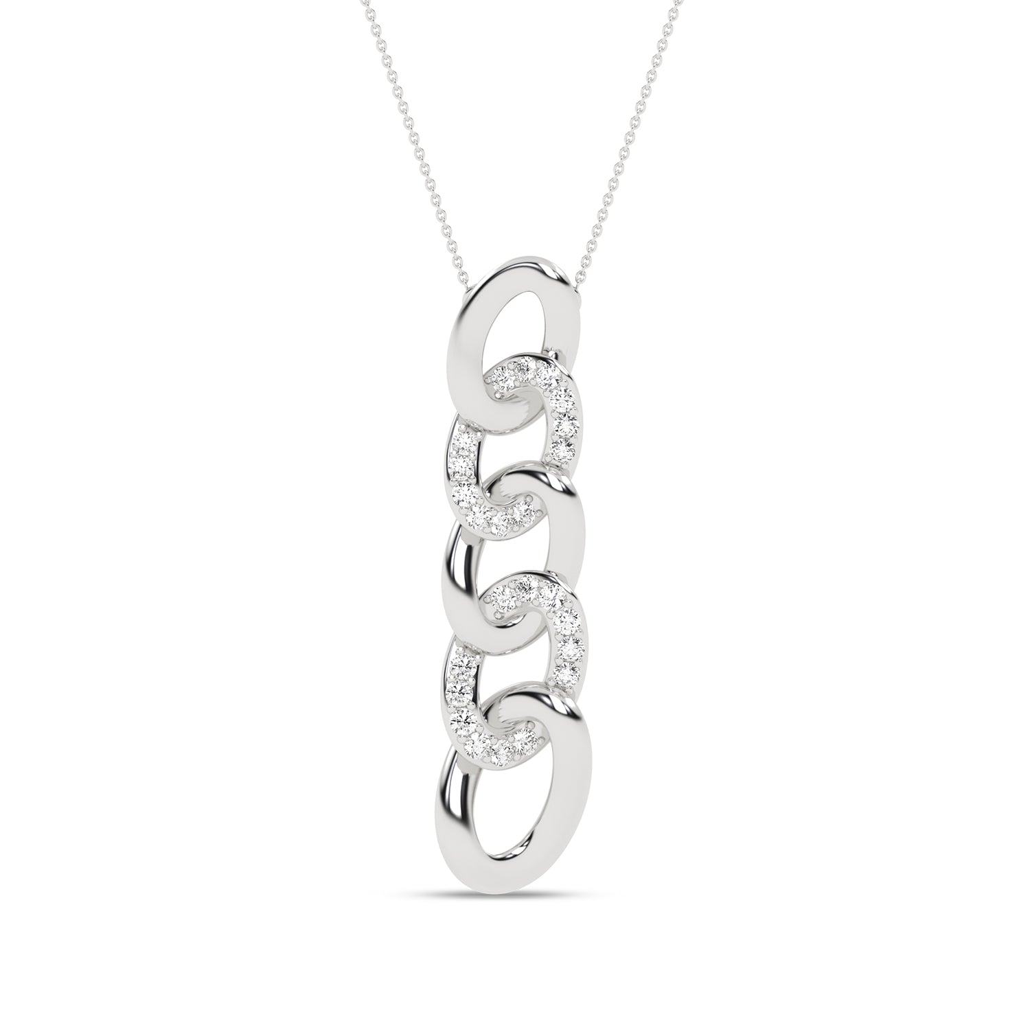 This showstopper features a cascade of diamond-studded rings for a bold and unique look. Beautifully crafted in gold, the interlocking loops make this necklace an excellent gift.