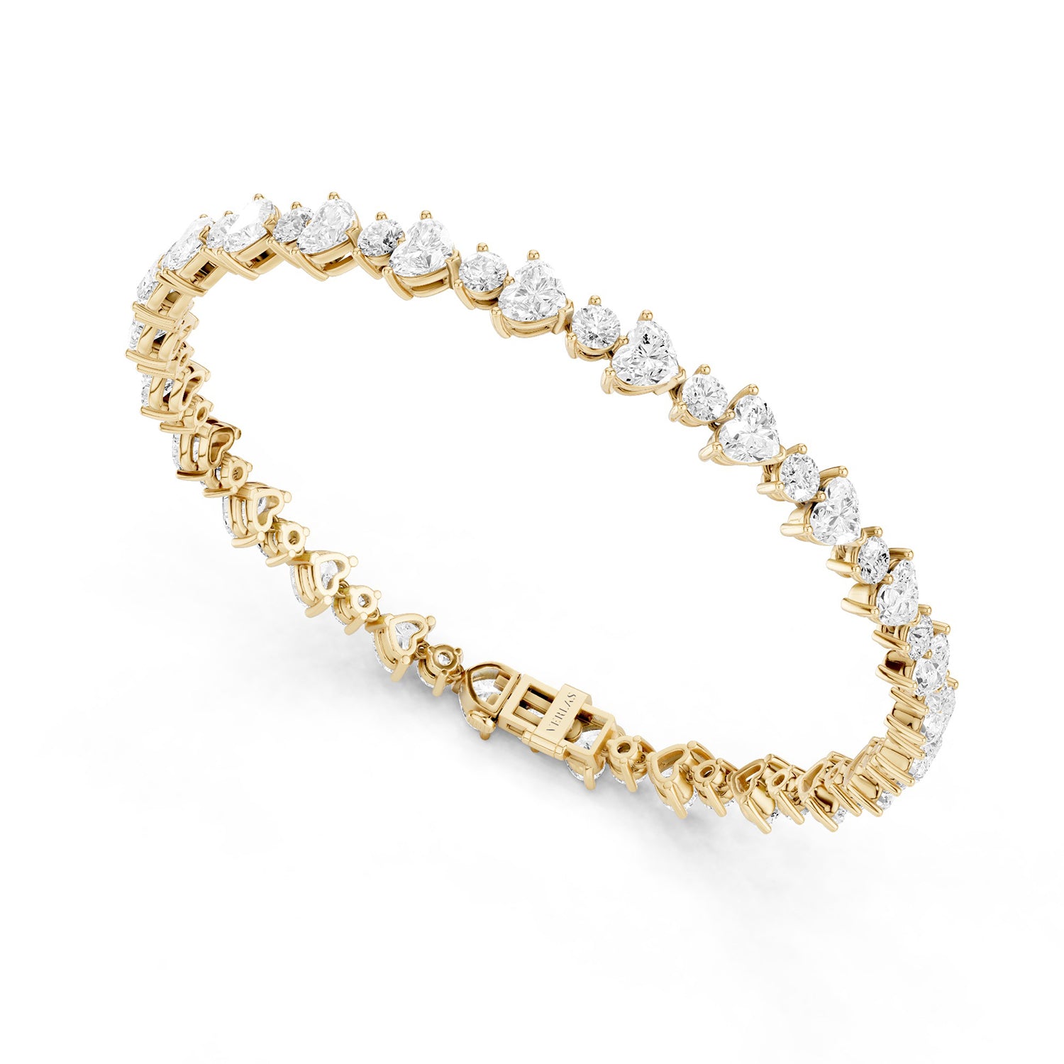 This stunning tennis bracelet features an alternating sequence of lab-grown diamonds highlighting the unique shapes, perfect for expressing love. Whether accessorizing for a special occasion or adding glamour to your everyday style, it is a versatile addition to your collection.