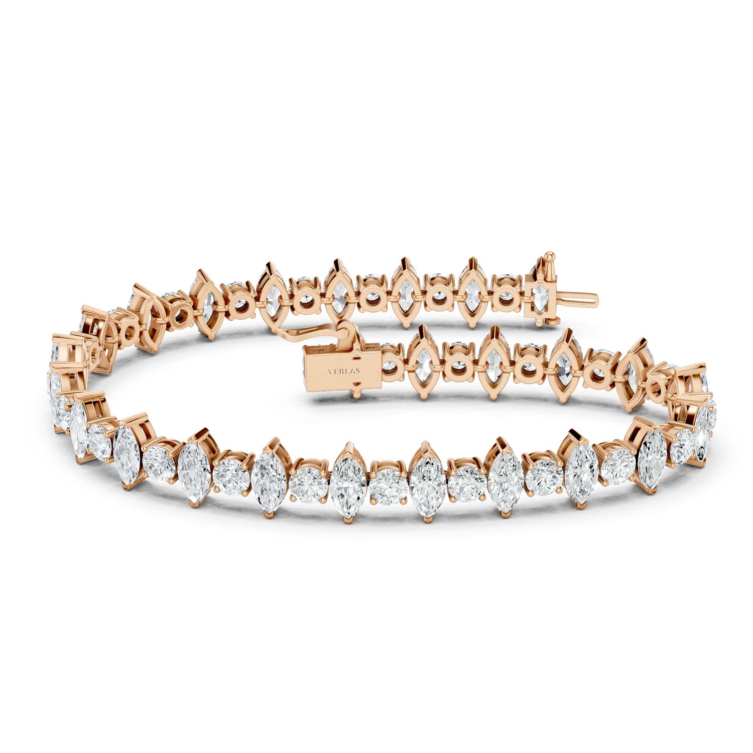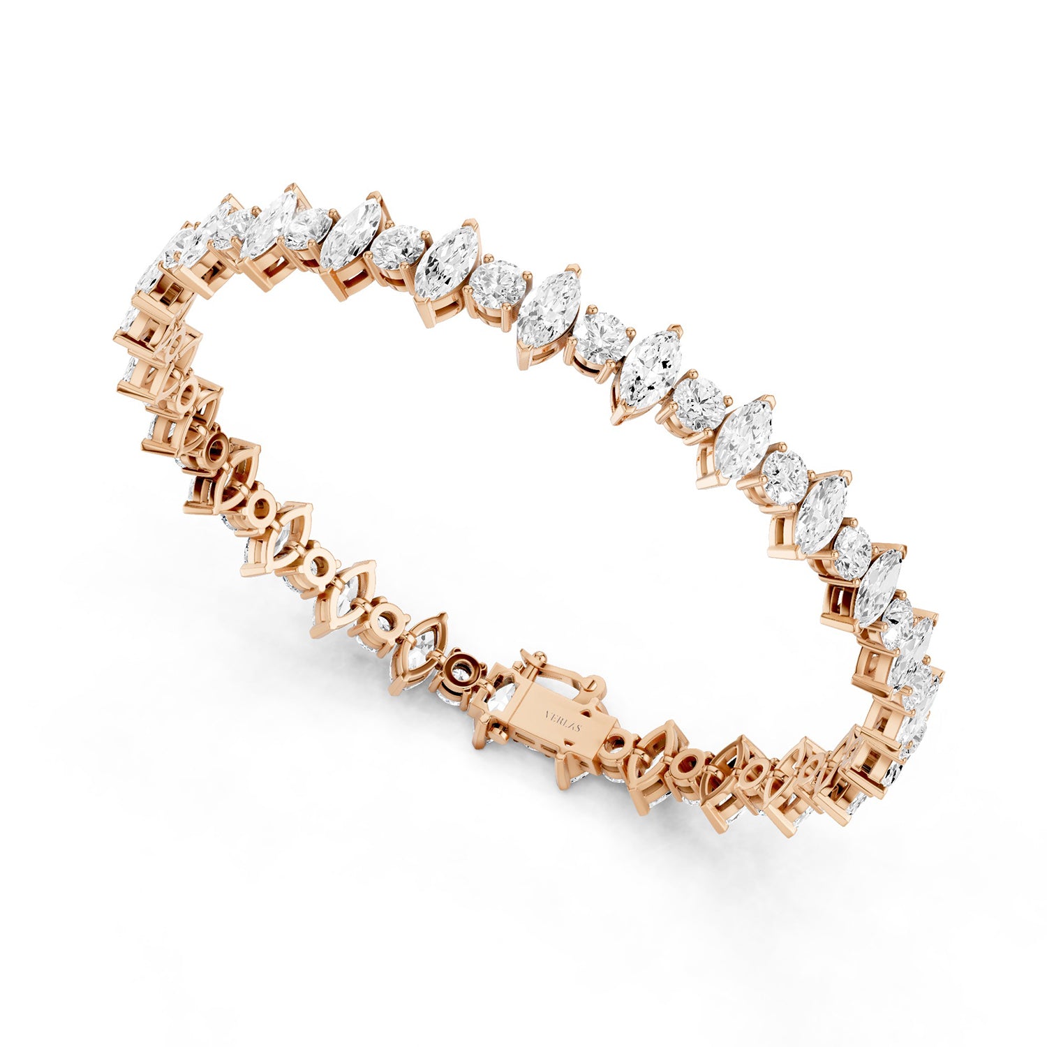 Step into a world of regal sophistication with this stunning Diamond Tennis Bracelet - featuring an elegant interplay of marquise and round lab-grown diamonds. Every diamond is expertly set in a secure prong setting, making it a perfect companion for both casual elegance and dazzling evenings. Crafted for the modern woman who cherishes sustainable luxury, this diamond bracelet marries ethical craftsmanship with exquisite design. Its unique alternating diamond pattern adds a fresh twist to the classic tennis bracelet, while the open box clasp ensures a seamless and secure fit that complements your lifestyle with ease.
