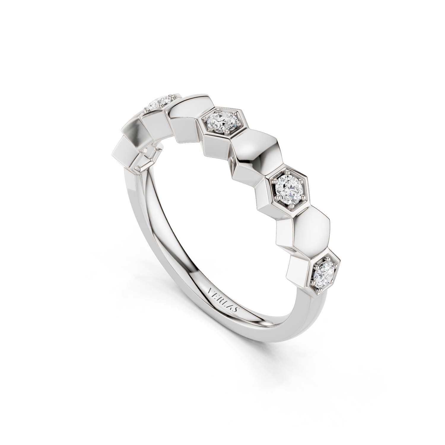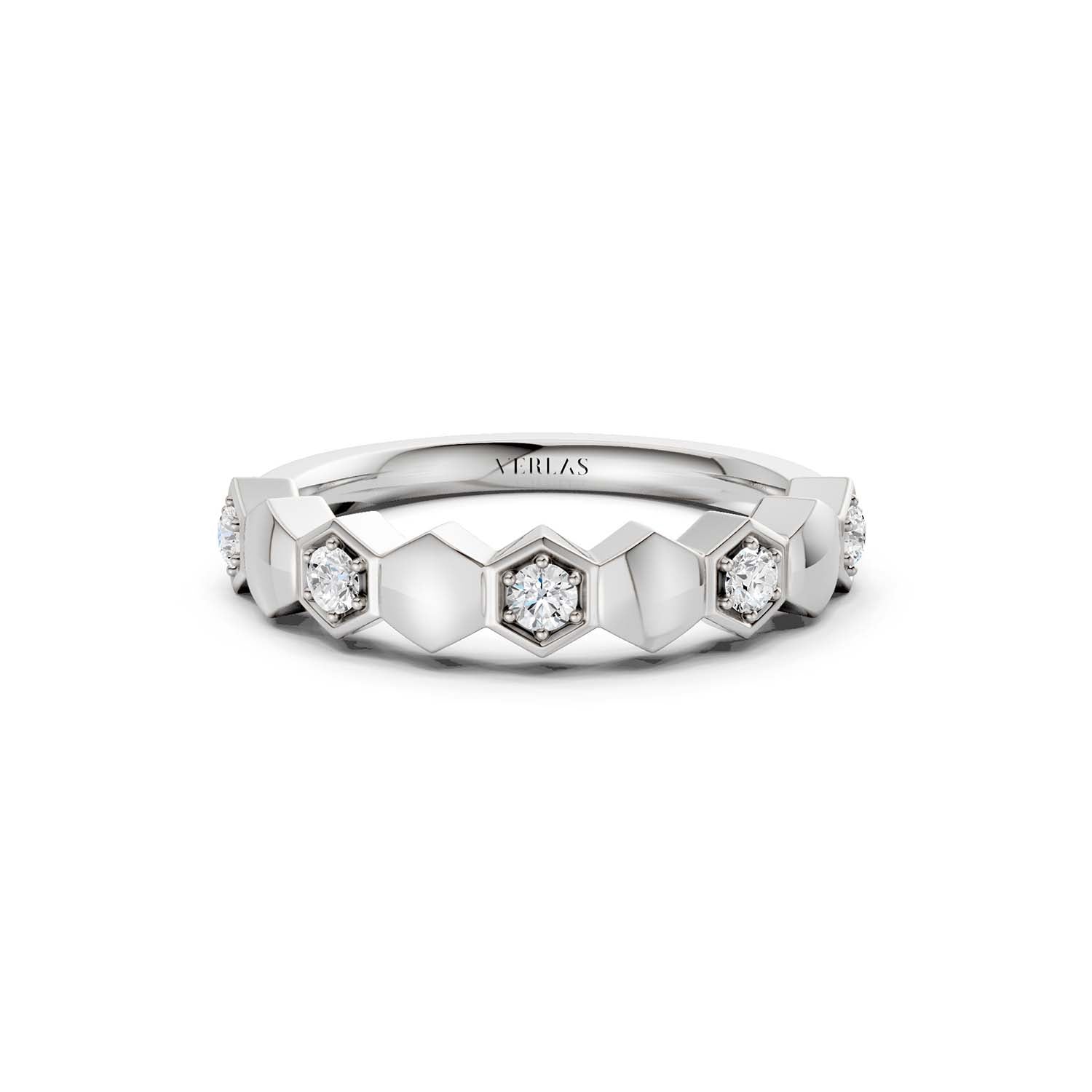 Exquisite and modern, this gold hexagon band features alternating diamonds set in a captivating design. The intricate craftsmanship and attention to detail are evident at every glance. Its contemporary and unique style make it a perfect choice for those seeking a sophisticated yet distinctive piece of jewelry.