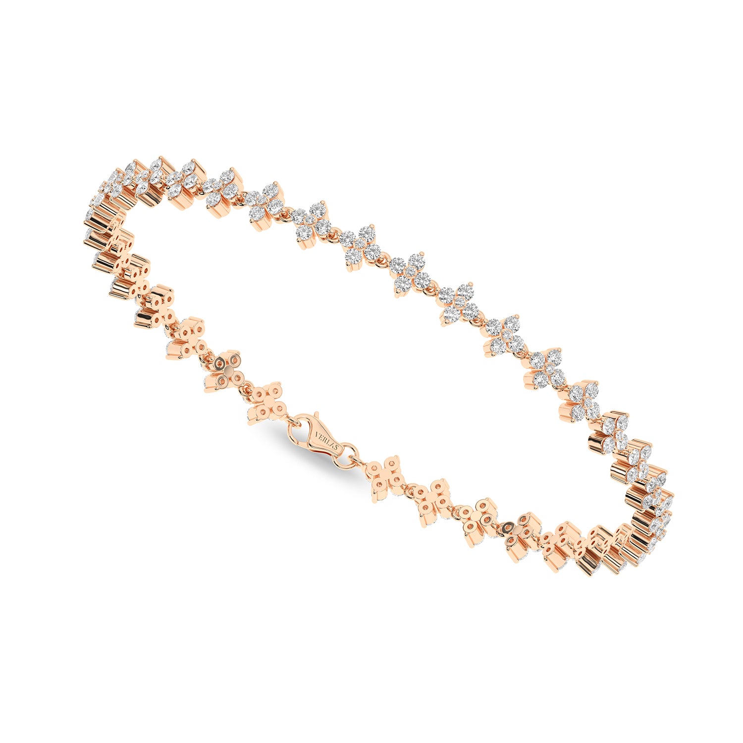 A design so intricate that it rivals a blooming garden, the Alyssa Blossom Tennis Bracelet celebrates the beautiful motifs found in nature. This enthralling bracelet is intricately designed with round brilliant cut diamonds set in a delicate floral pattern. Designed to make a statement, this timeless diamond tennis bracelet adds a touch of luxury to your every look.