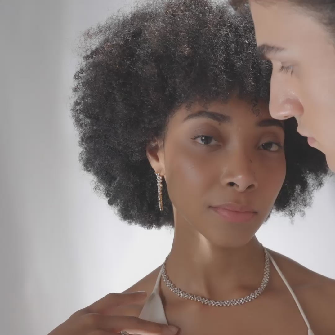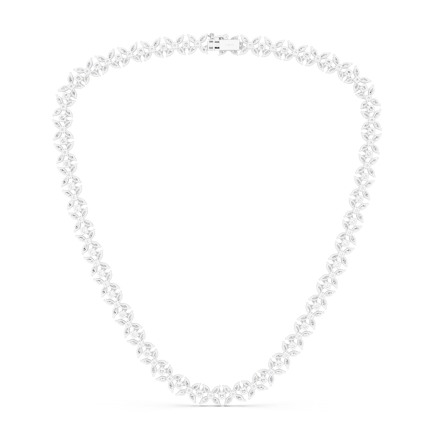 Unveil a symphony of elegance with the Alyssa Bouquet Tennis Necklace. This breathtaking diamond necklace features a full row of enchanting diamond florets, meticulously arranged on a luxurious solid gold chain. Each floret, a delicate bouquet of four marquise diamonds encircling a brilliant round-cut diamond at its heart, is seamlessly separated by additional round-cut diamonds, creating a continuous dance of sparkle and sophistication. Designed to be a true statement piece, the Alyssa Bouquet Tennis Necklace is the perfect accessory for weddings, bridal wear, or any special occasion where you want to shine with unparalleled grace.