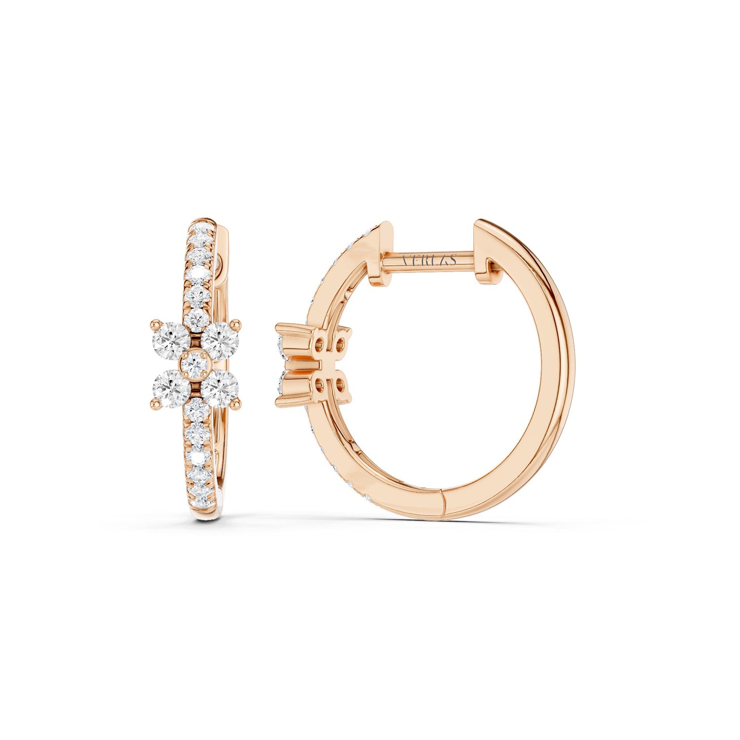 Each Alyssa Empowered Floral Statement Hoop presents a central diamond floret embellished with 12 round cut diamonds in a pave setting. These minimally marvelous hoops emphasize the simplistic charm of the floral structure. What makes them unique is their versatility and ability to be easily paired with other pieces in your collection. Enhance your style and captivate your surroundings with this blossoming beauty today.