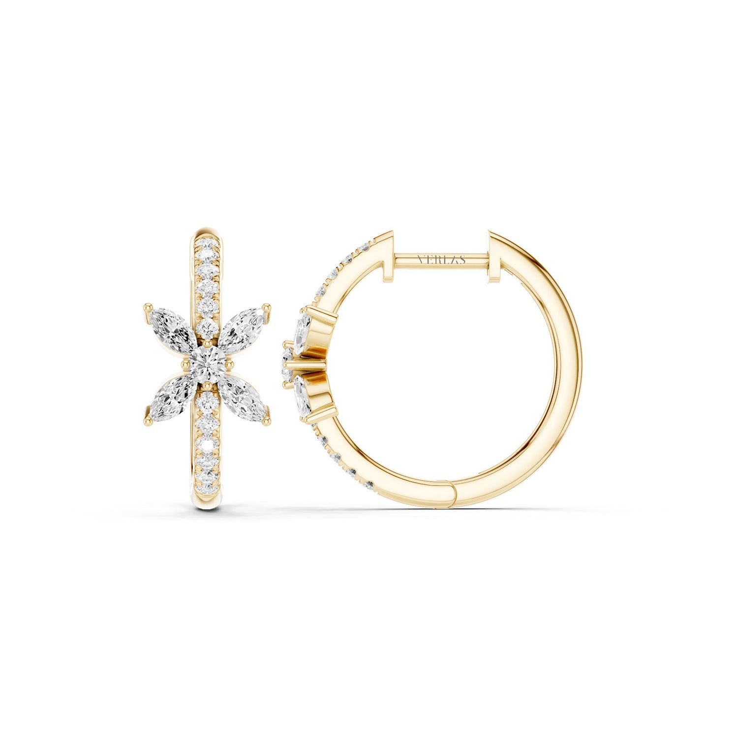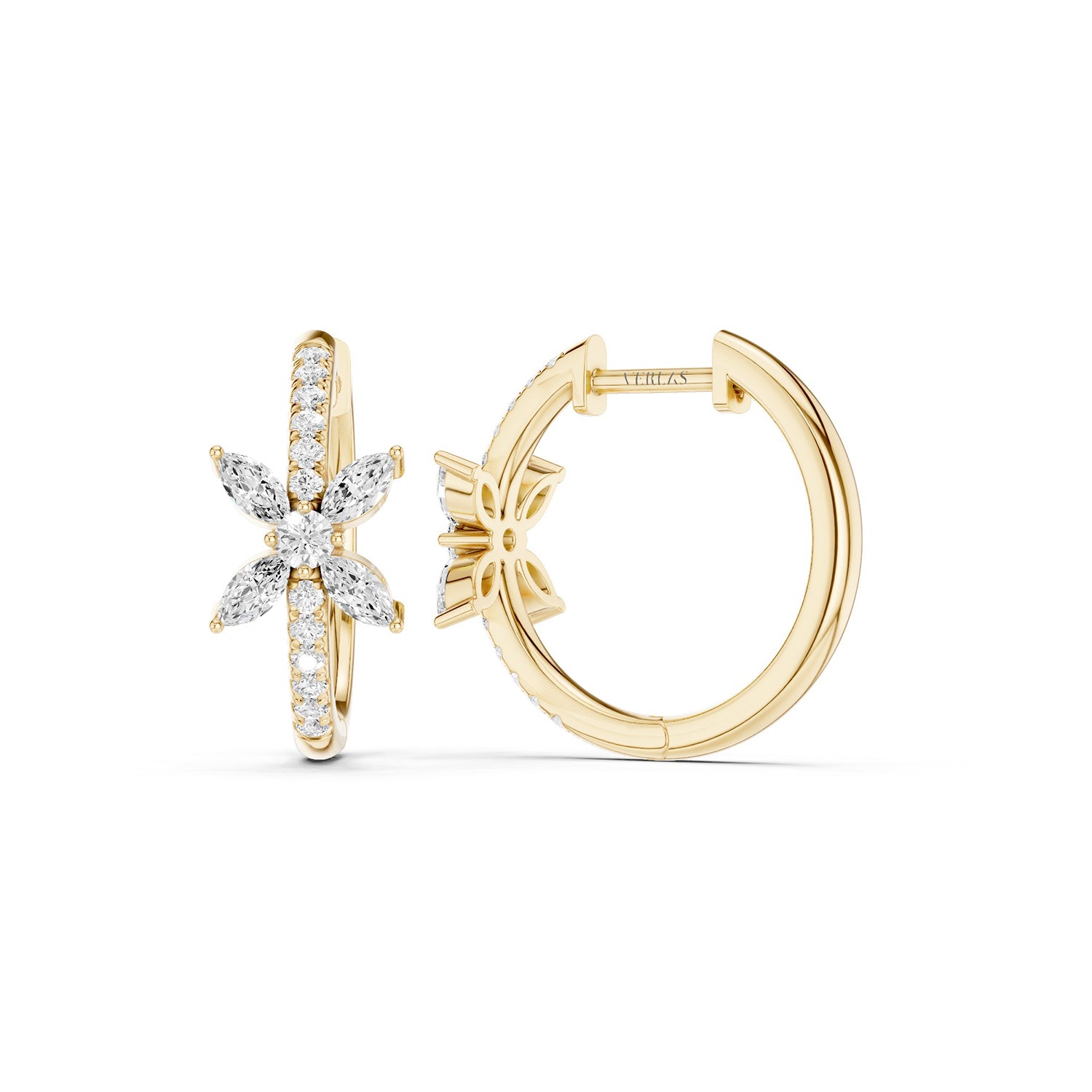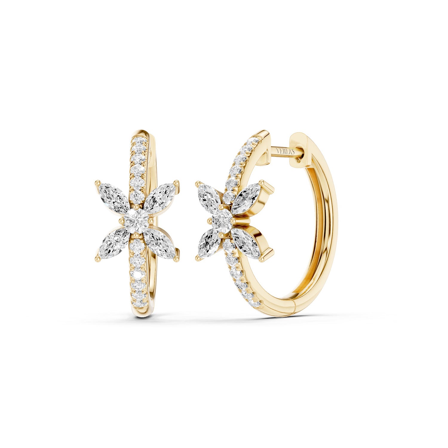Discover the elegance of the Alyssa Empowered Marquise Floral Hoops where each hoop features a central diamond floret, beautifully embellished with marquise-cut diamonds set in a graceful floral pave pattern. These diamond hoop earrings capture the refined charm of the floral design with a sophisticated twist. The marquise lab-grown diamonds add a touch of unique elegance, while the hoop's versatile design ensures effortless pairing with any ensemble. Elevate your look with these exquisite hoops and let their blooming beauty enhance your style and captivate every gaze.