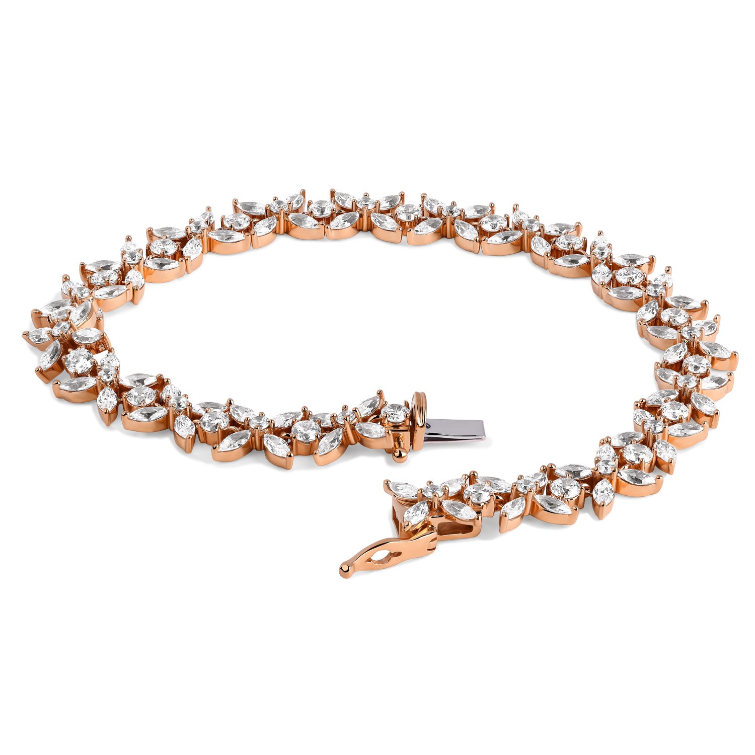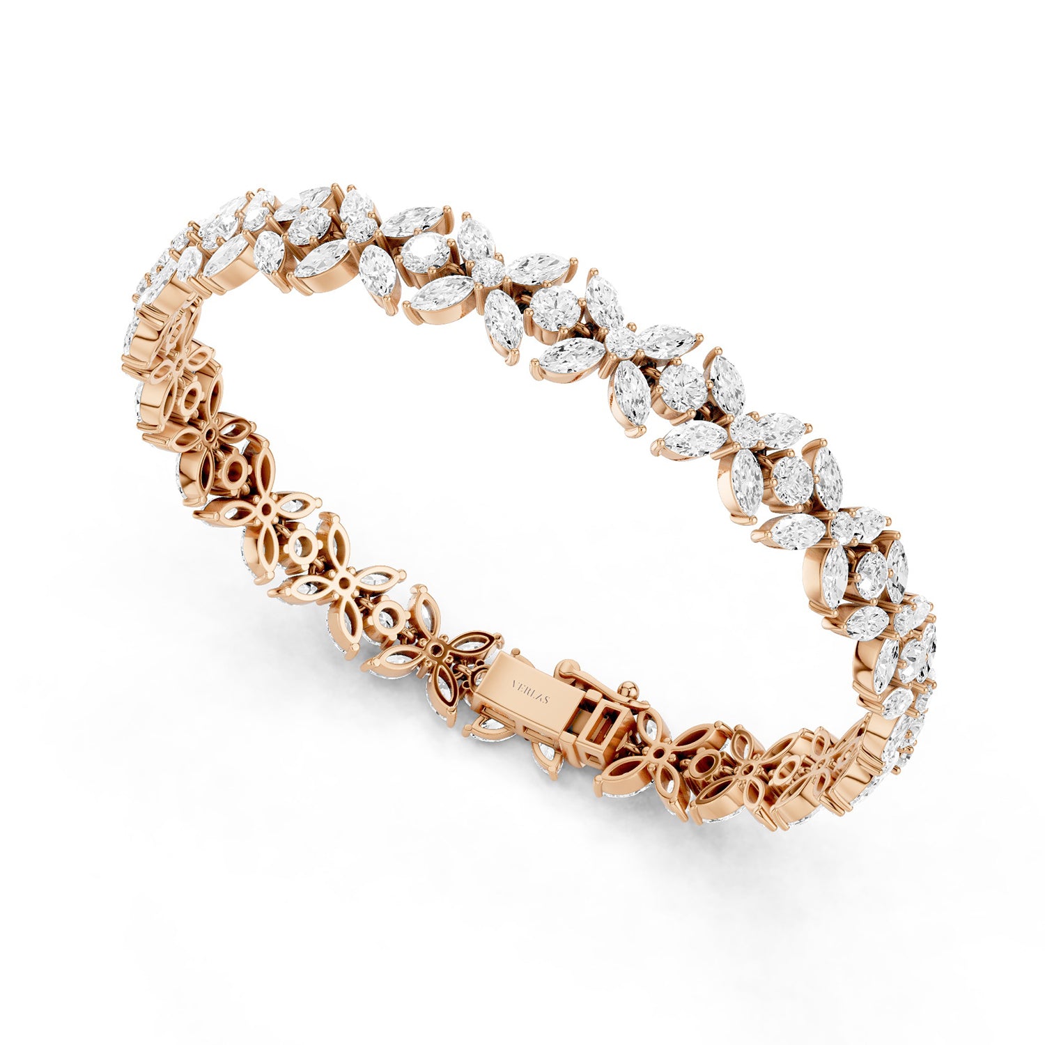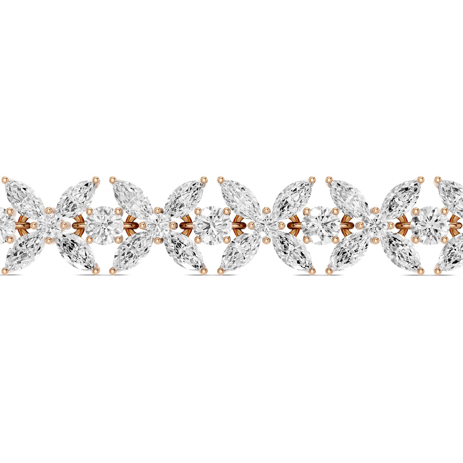 Adorn your wrist with the enchanting beauty of the Alyssa Marquise Tennis Bracelet. This exquisite bracelet features 21 delicate lab-grown diamond florets, each showcasing marquise-cut diamonds as petals surrounding a round diamond center. Connected by round diamonds, these florets are set in a sleek solid gold bracelet, secured with a refined GB clasp. Inspired by nature, this intricate piece from the Alyssa collection radiates elegance and charm. Perfect for adding a touch of sophistication to any outfit, this diamond tennis bracelet is designed to capture attention and make a lasting impression.