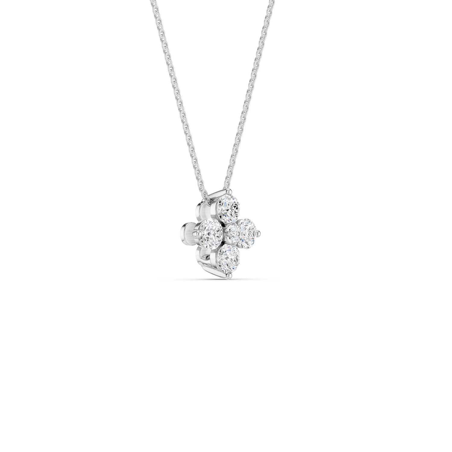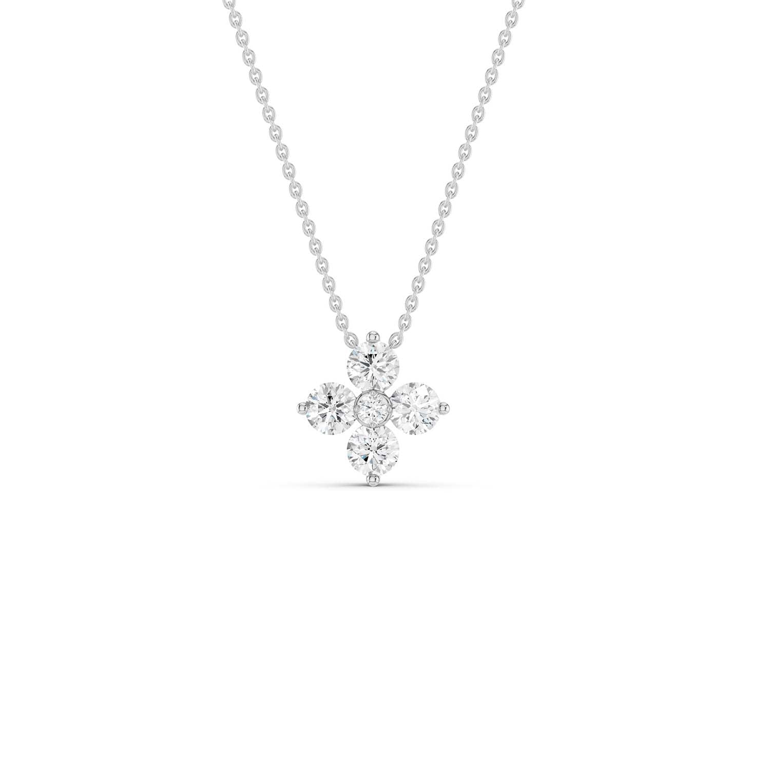 This blossoming beauty creates the perfect amount of sweet gleam, featuring five scintillating round diamonds set in a floral design. Perfect for layering, this intricately designed diamond necklace pendant is sure to add a touch of elegance to your everyday jewelry.