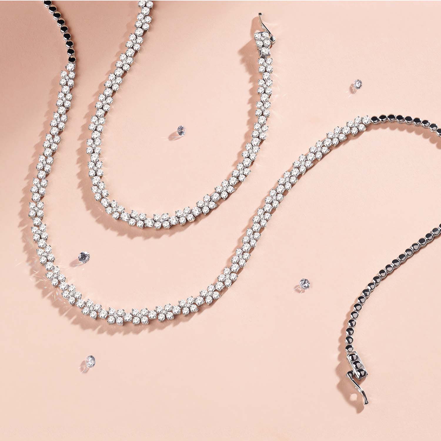 Cubic Zirconia (CZ) simulates the beauty of a diamond but differs drastically in its quality and value. Your Try-at-Home replica jewelry is made with CZ to mimic the beauty of real jewelry at a fraction of a cost so you can feel confident in knowing what your real Verlas jewelry will look like.