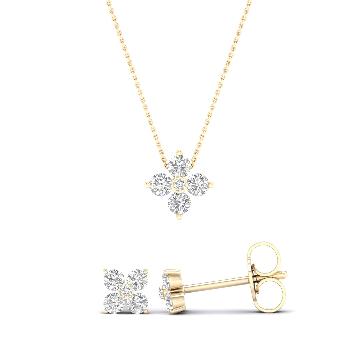 Alyssa diamond jewelry gift set exudes brilliance.The Alyssa studs and pendant necklace is meticulously crafted to resemble delicate and enchanting flowers, capturing the essence of blooming beauty. Gift yourself or your loved one this beautiful set.