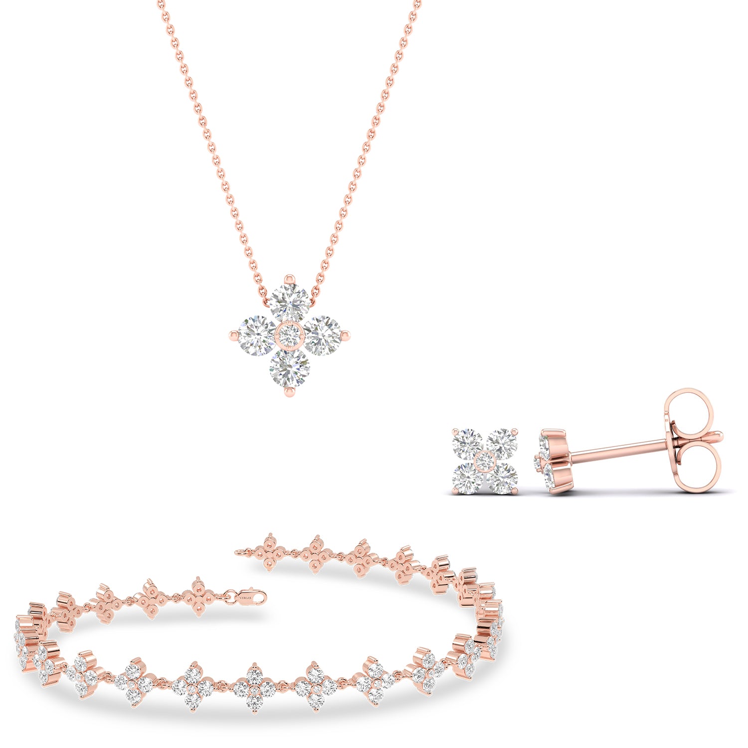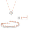 Alyssa diamond jewelry 2.5 Ct. gift set embodies true elegance.Each of the 3 designs is meticulously crafted to resemble delicate and enchanting flowers, capturing the essence of blooming beauty making perfect to express your everlasting love.