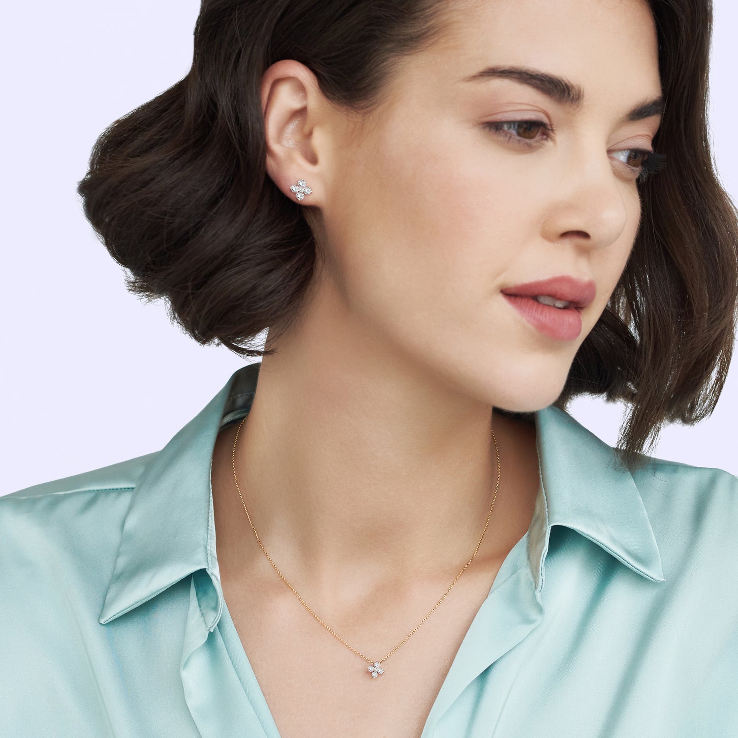 Gold is an elegant, classic metal that is resistant to discoloration, and slightly shinier than platinum. To optimize quality and durability, we blend our gold with other metals in varying amounts expressed in karats (18K is richer in gold than 14K). You can choose between elegant, vibrant, and delicate 18K or the ever-popular and always lasting 14K.