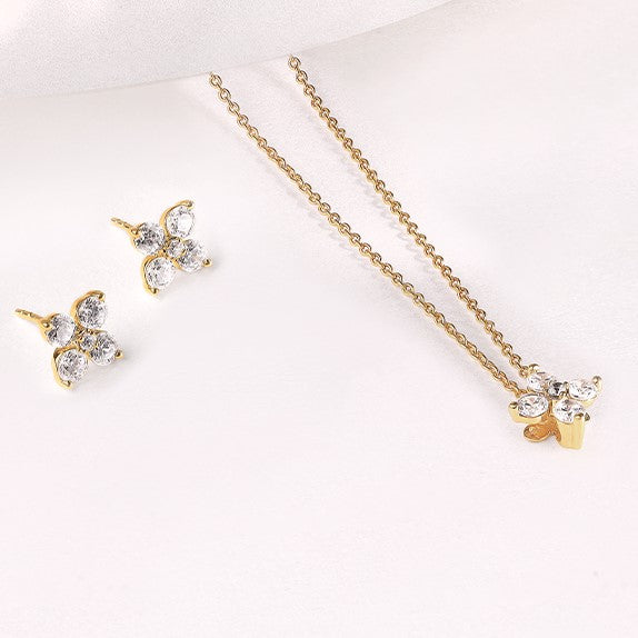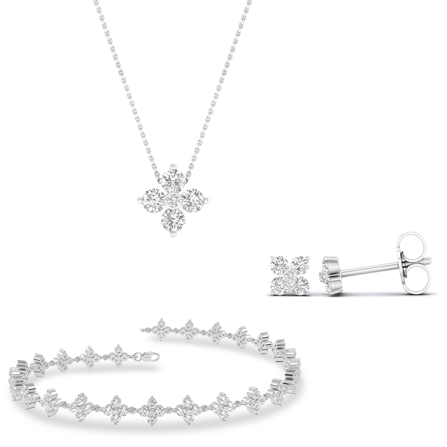 Alyssa diamond jewelry 2.5 Ct. gift set embodies true elegance.Each of the 3 designs is meticulously crafted to resemble delicate and enchanting flowers, capturing the essence of blooming beauty making perfect to express your everlasting love.