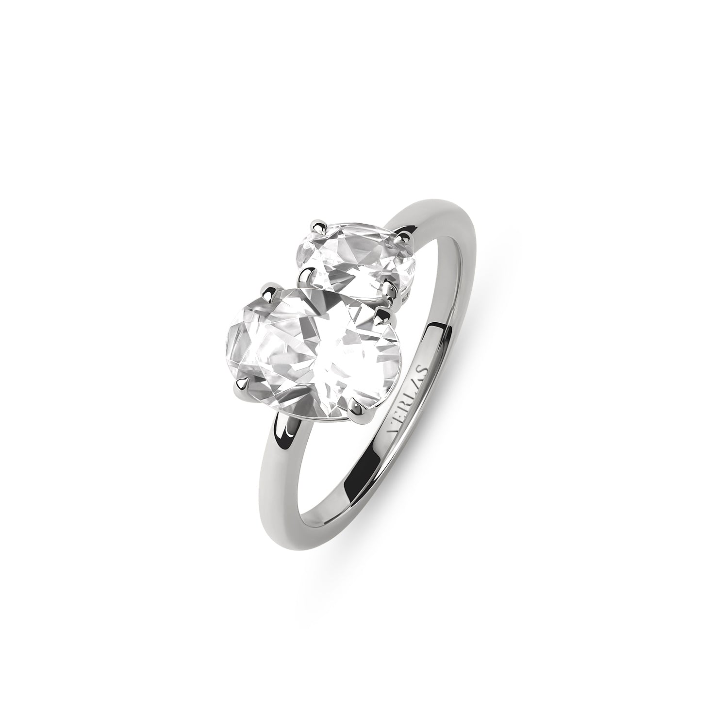 Crafted with the utmost care, this two stone ring demonstrates both the differences and similarities you share with your loved one. Each oval diamond is prong-set on a solid gold band, creating an exquisite setting for a brilliant pair of lab-grown diamonds that will never be apart.