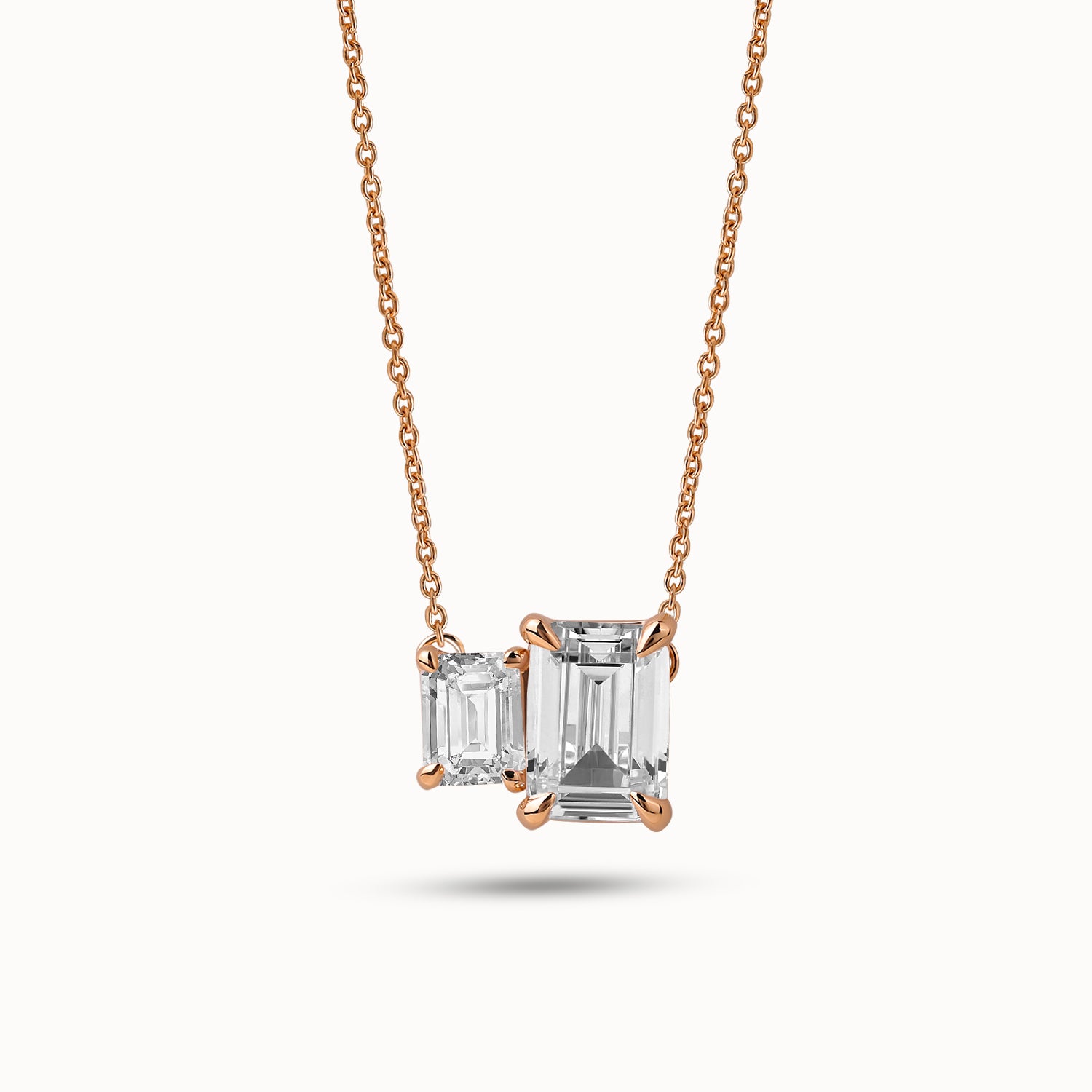 This two stone necklace features one large and one small emerald-cut diamond set within solid gold prongs on a delicate chain necklace. The differing sizes remind you of the growth you have achieved and the steps you have taken to get there. This lab-grown diamond necklace has the elegance and allure that will bolster any wardrobe.