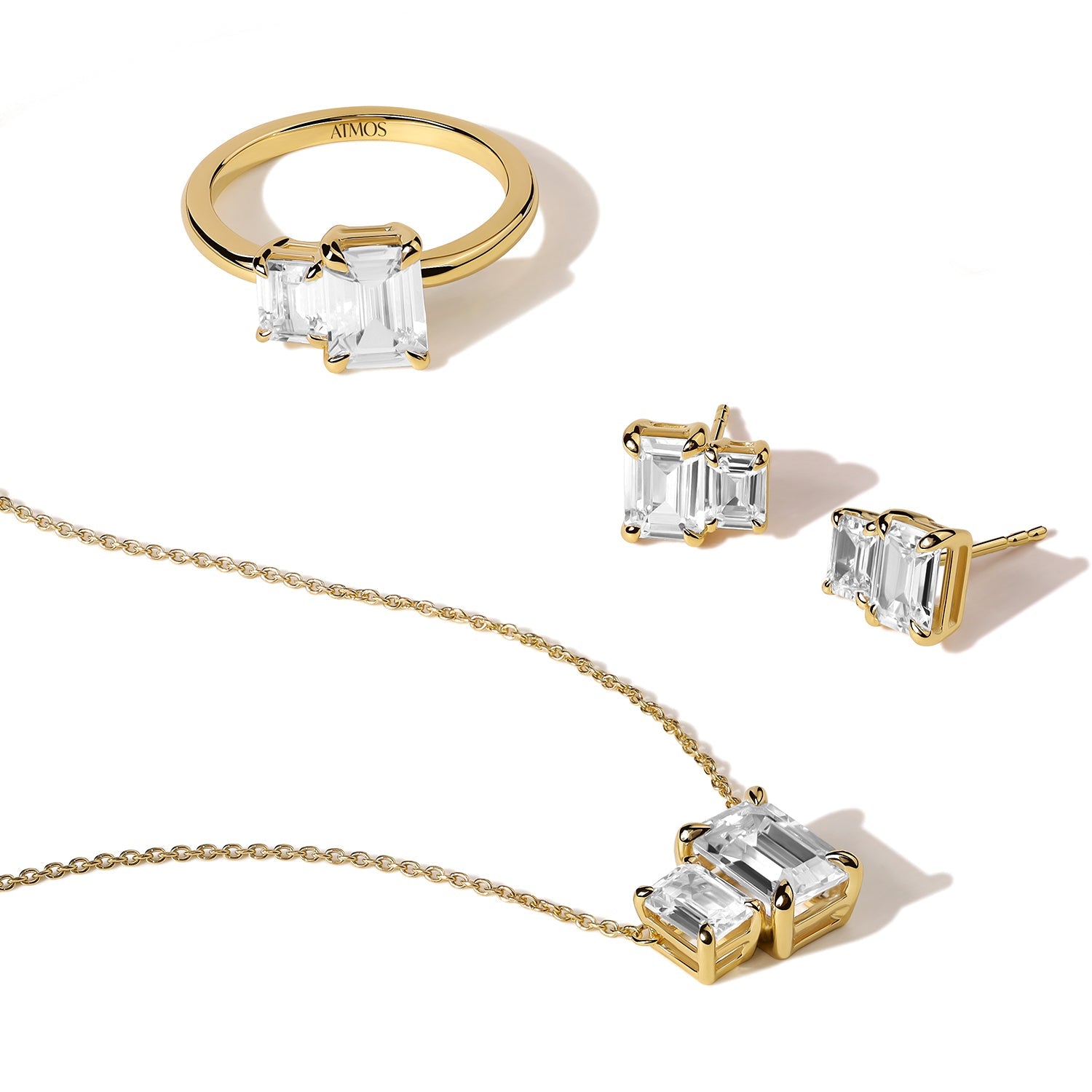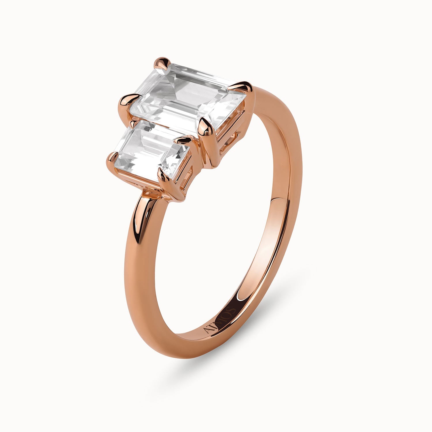 This two stone lab-grown diamond ring is the realization of regal elegance. Featuring two prong-set emerald-cut diamonds on a gold shank, this illustrious piece of craftsmanship represents your devotion to your loved one and the steps you have taken to get there.The Emerald Crescendo Open Ring features four prong-set emerald cut lab grown diamonds on a solid gold band. The increasing size of each diamond accentuates the brilliance of the entire ring, further emphasized by the full stop of the band. Whether worn as a solo piece or an intrinsic part of your ensemble, this ring will do more than just delight your eyes.