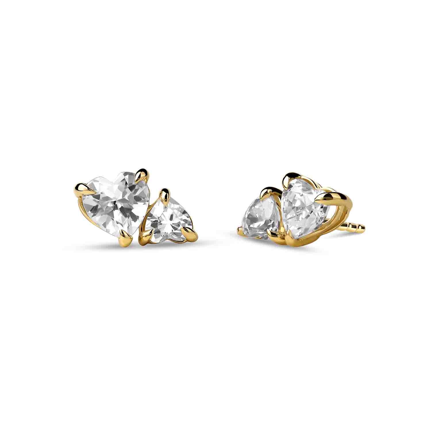 Asymmetrical Heart Diamond Toi et Moi Studs
