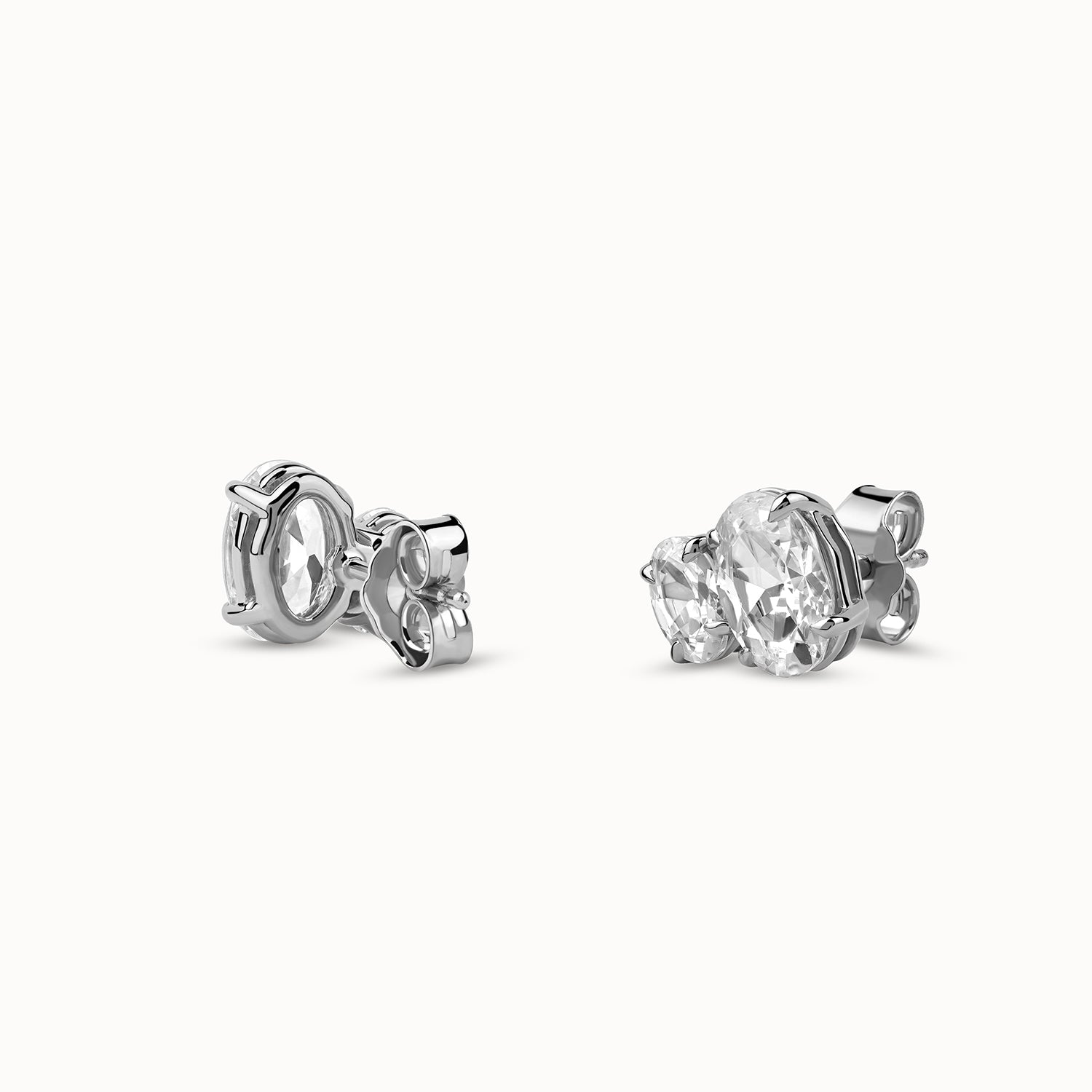 Asymmetrical Oval Diamond Toi et Moi Studs