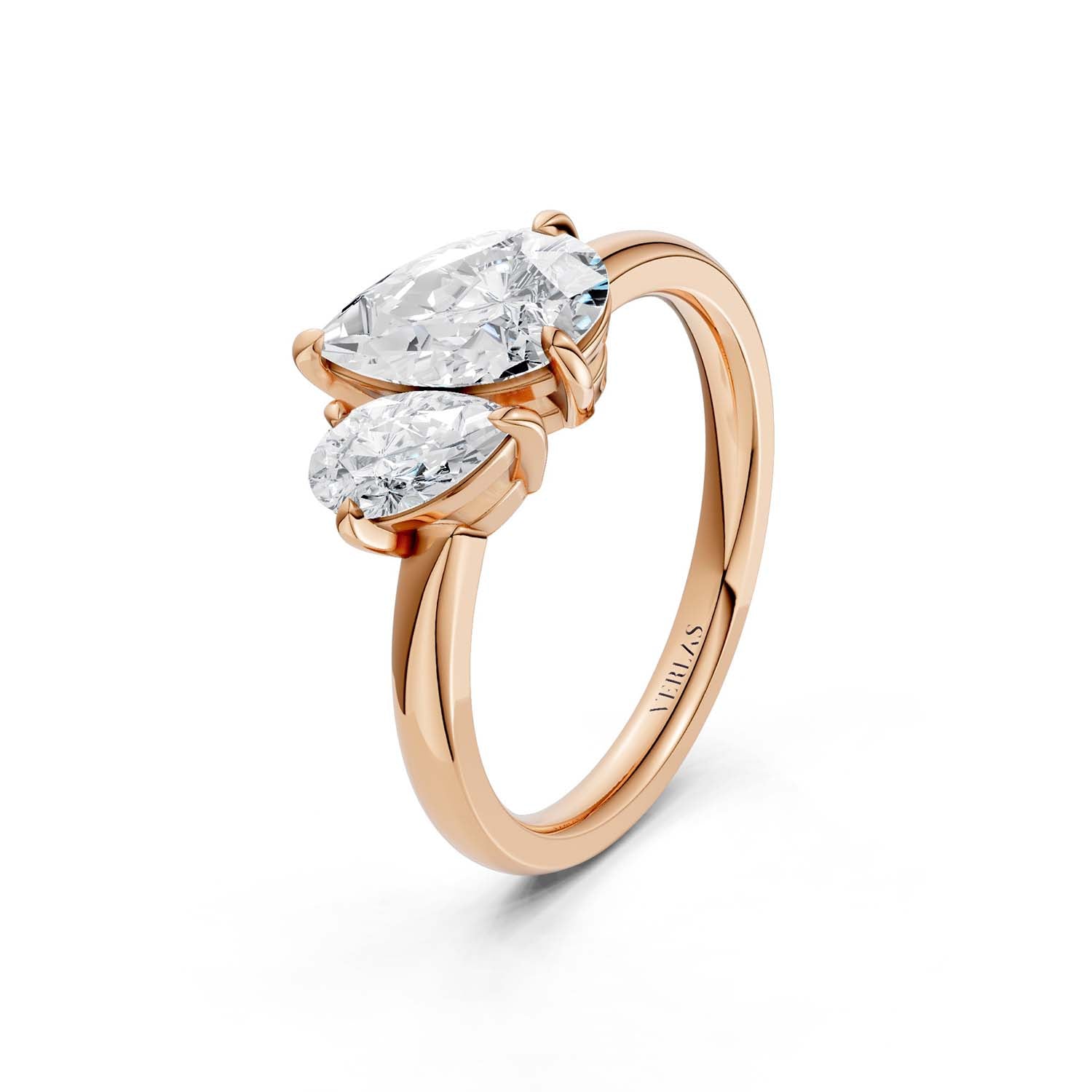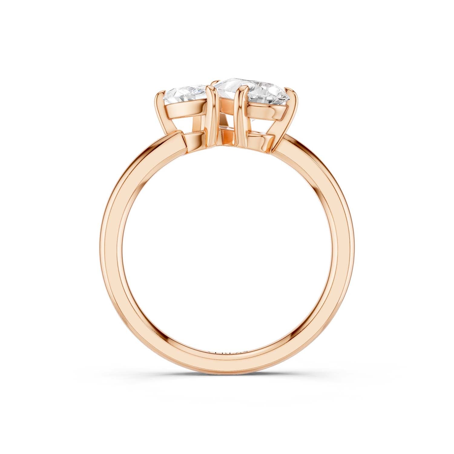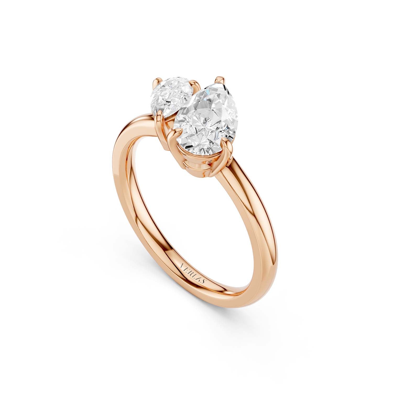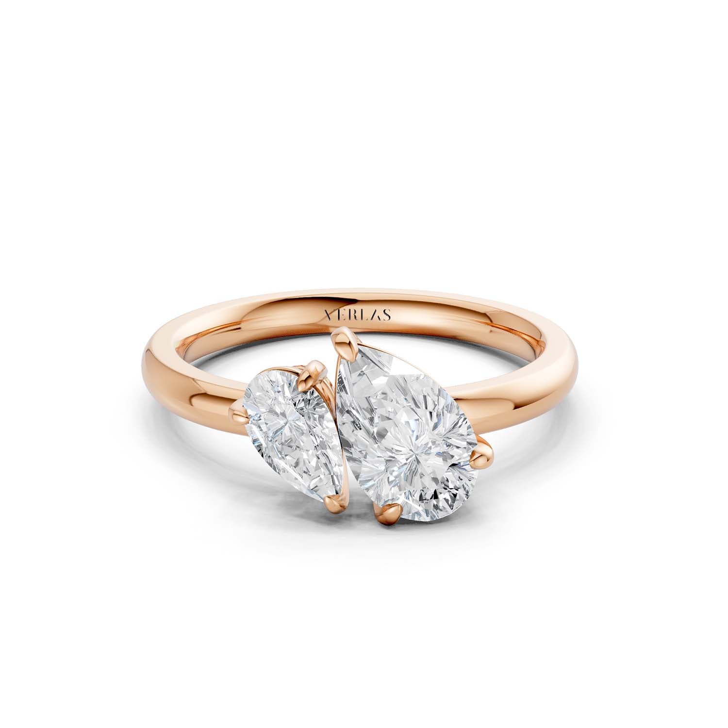 Crafted with love, this Toi et Moi ring showcases two asymmetrical pear-shaped diamonds, representing the beautiful imperfections and unique qualities that make every relationship extraordinary. Nestled delicately upon a shimmering gold shank, these pear diamonds share a harmonious space, symbolizing the intricate dance of love and companionship.