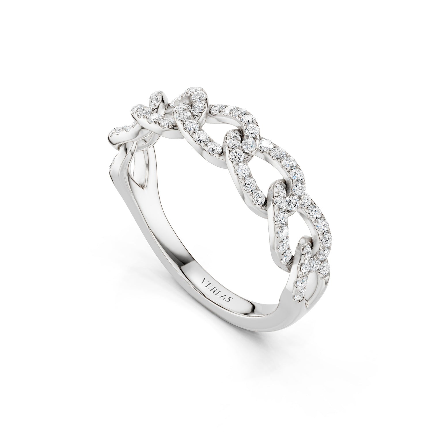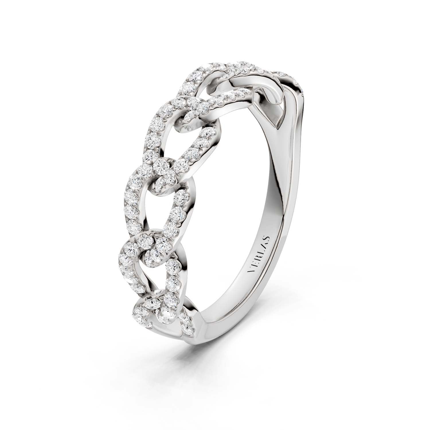 Platinum is an exceptionally durable, bright white, hypoallergenic metal that’s 30 times rarer than gold. At 95% purity, Verlas platinum is the ideal canvas to make diamonds and intricate engravings pop to the fullest.