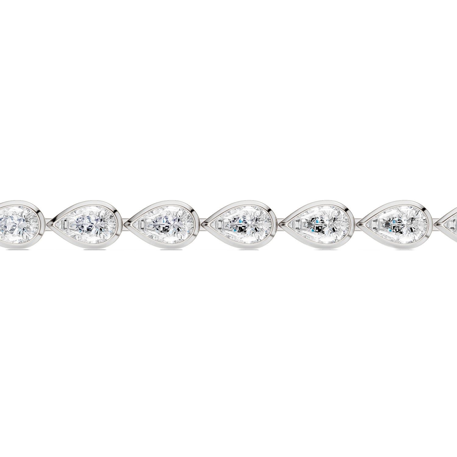 This stunning Bezel-set Pear Diamond Tennis Bracelet features lab-grown pear-shaped diamonds, each encased in a sleek bezel setting that enhances their brilliance while offering a modern, secure design. The bezel setting not only provides durability but also showcases the graceful shape of each diamond, making this piece as practical as it is breathtaking. This tennis bracelet transitions effortlessly from casual coffee dates to glamorous evening events. Whether you're pairing it with a minimalist watch or stacking it with other bracelets, this diamond bracelet is your go-to for timeless sophistication.