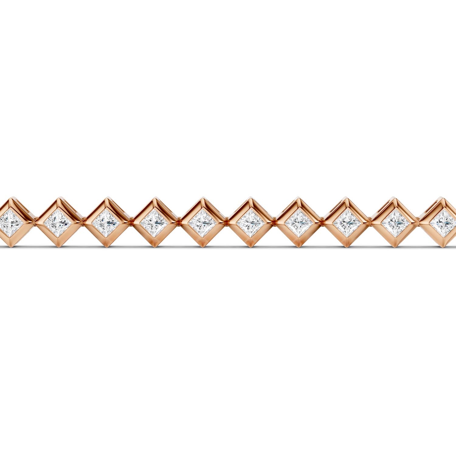 The Bezel-Set Princess Tennis Bracelet showcases princess-cut diamonds, securely nestled in bezel settings, echoing the stability and radiance of our regal experiences. The design of this princess cut diamond tennis bracelet reflects the delicate balance between vulnerability and resilience.Whether you're treating yourself or expressing your admiration for a loved one, it is a gift that will be cherished for years to come.