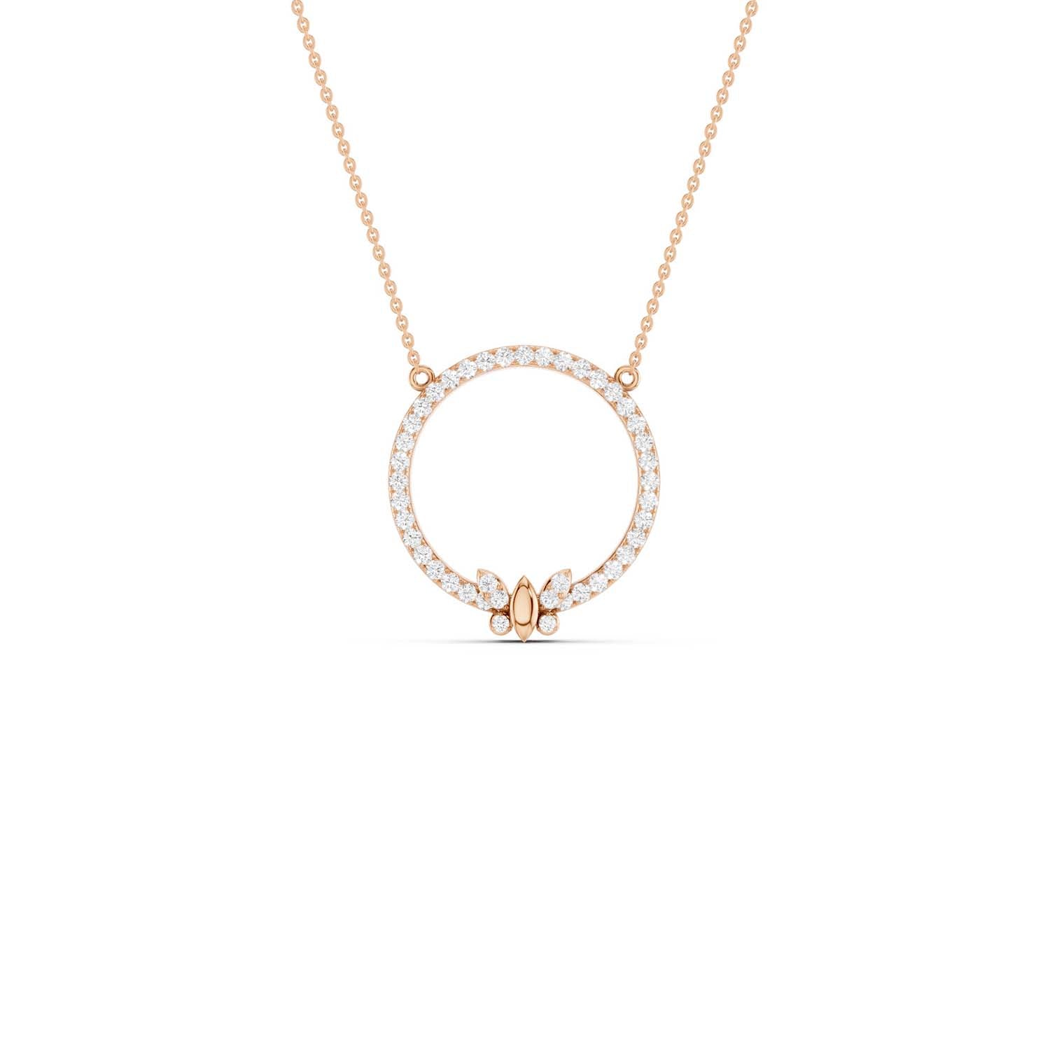 Crafted with love, the Butterfly Circular Silhouette Pendant boasts a flawless circular silhouette, adorned with a dazzling array of brilliant diamonds. A delicate butterfly motif graces its center adding a touch of elegance to it. This diamond necklace design is a symbol of love and care, making it the perfect gift for someone truly special.