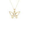 This Butterfly Flutter Silhouette Pendant features a delicate butterfly silhouette, intricately carved in shimmering gold. The heart of this diamond pendant necklace is adorned with brilliant diamonds. Its timeless design ensures it complements any style, whether worn with casual attire or dressing up for a special occasion.