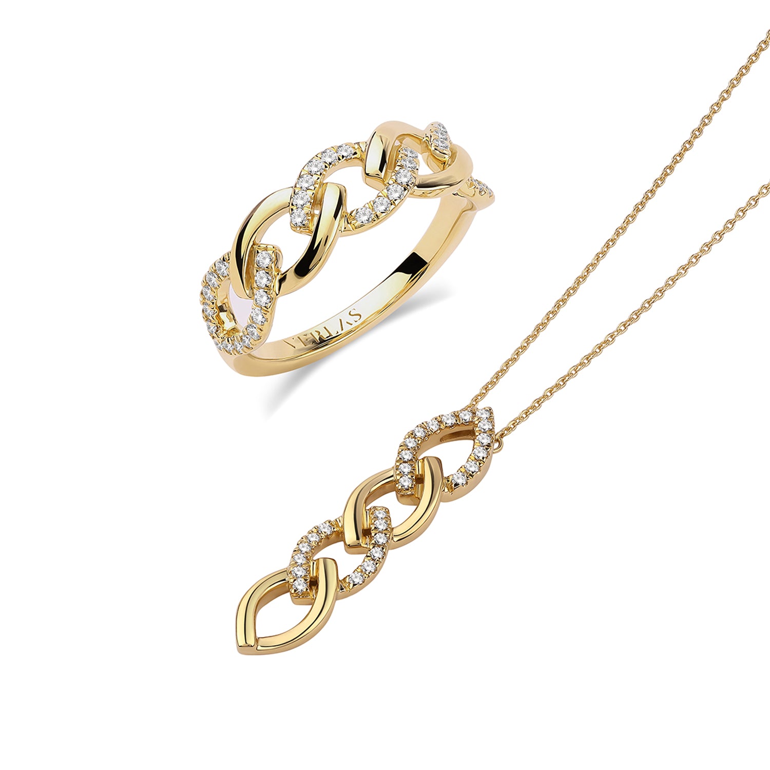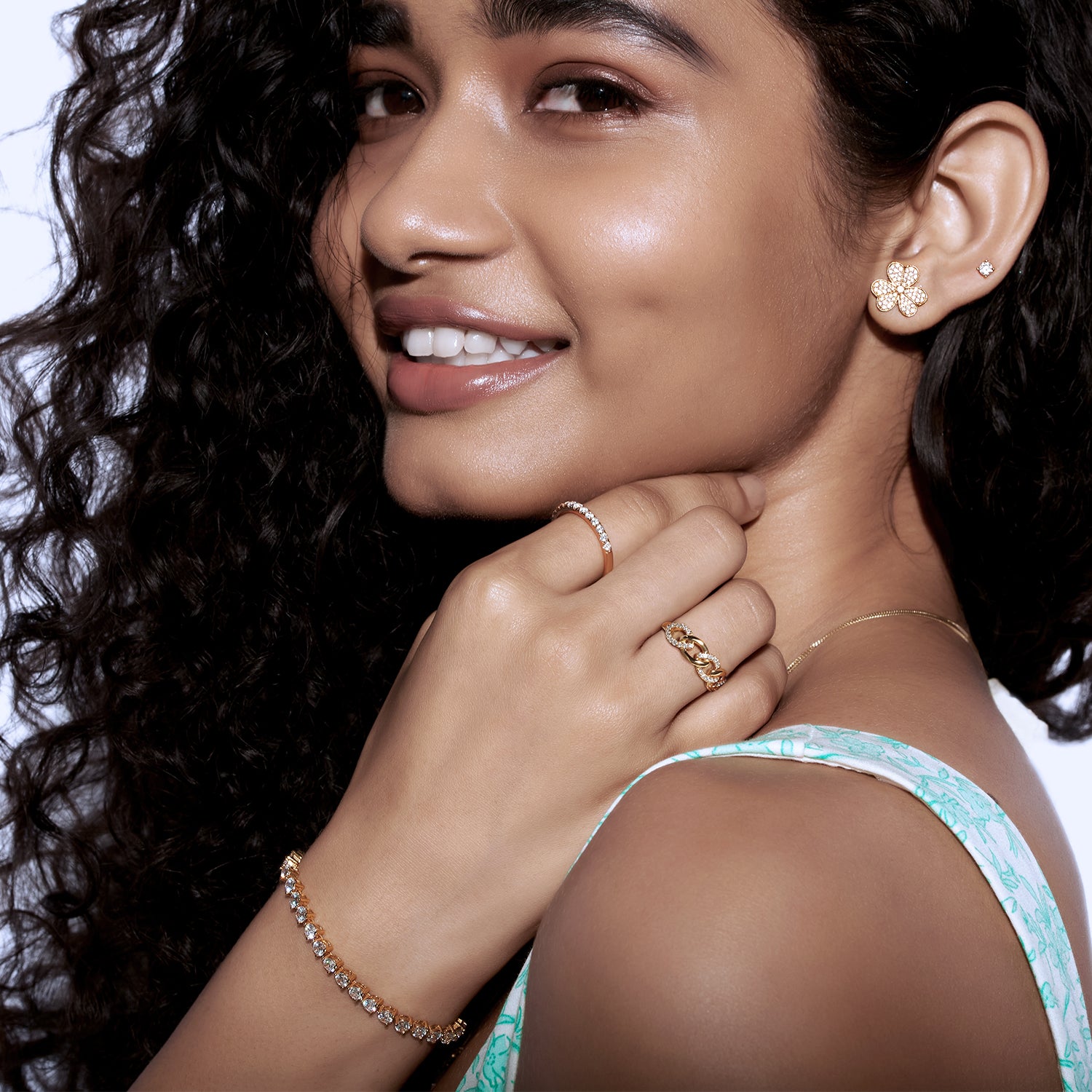 Symbolizing deeper connections, Le Bon by Verlas celebrates enduring links of love. This diamond jewelry collection captures the warmth of relationships with radiant gold links set with sparkling diamonds. Its minimal design conveys soft elegance and sophistication from every angle. Stunning, scintillating, and swaying its way into your heart, this collection offers a wide array of earrings, rings, necklaces, and bracelets. Create your personalised linked ensemble with