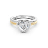 Introducing our Coupled Heart Bezel Ring—a timeless symbol of love and devotion. This exquisite solitaire ring showcases a lab-grown, heart-shaped diamond set in a sleek bezel setting, creating a captivating focal point. The unique dual-band design offers a striking contrast with white and yellow gold options or a romantic blend of white and rose gold, perfectly framing the diamond’s radiant sparkle. Whether it’s a heartfelt engagement or a cherished anniversary, this diamond ring seamlessly combines classic elegance with a contemporary twist, making it an unforgettable statement of commitment.