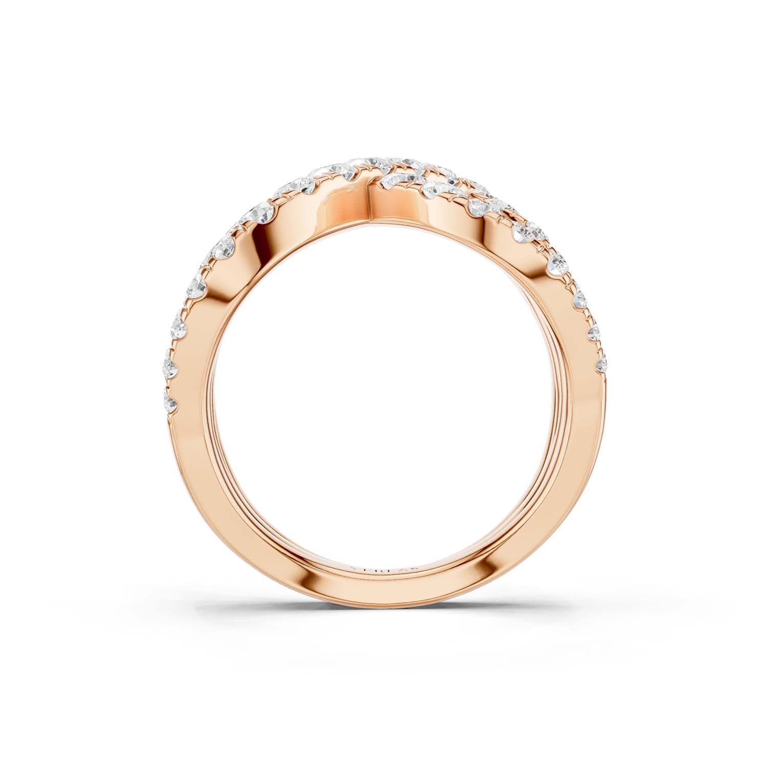 This Crossover Endearing Band features a captivating crossover design adorned with an array of shimmering diamonds, making it a stunning addition to your jewelry collection. Whether worn alone or create with a personalized diamond ring stack, it allows you to express your unique personality and flair.