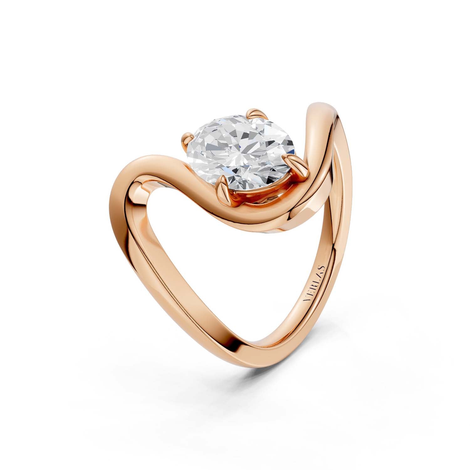 A curved shank of polished 14k / 18k gold in this lab created an oval diamond engagement ring, which gives it an exquisite touch. The unique pattern of the band's waves with an attractive asymmetrical appearance gives it a quirky and one-of-a-kind look.