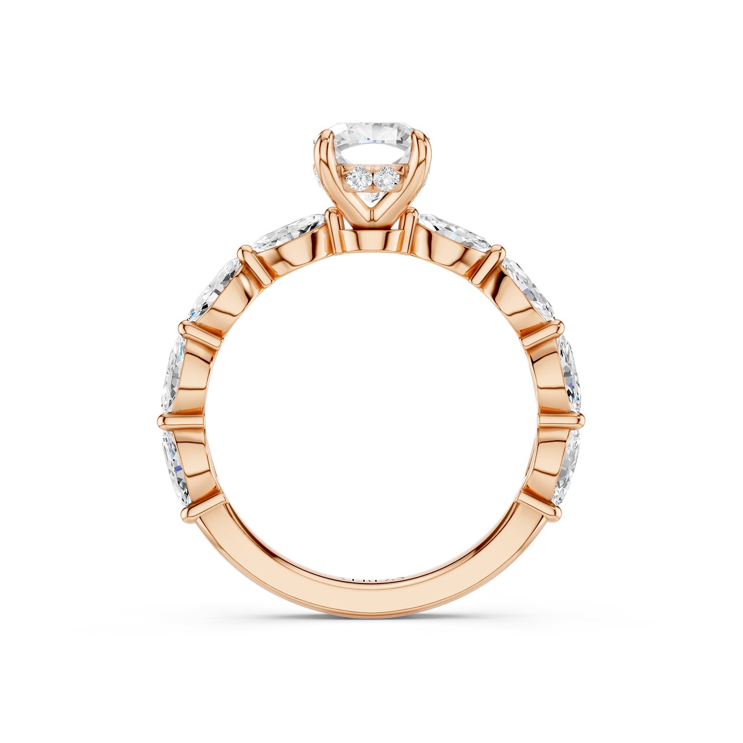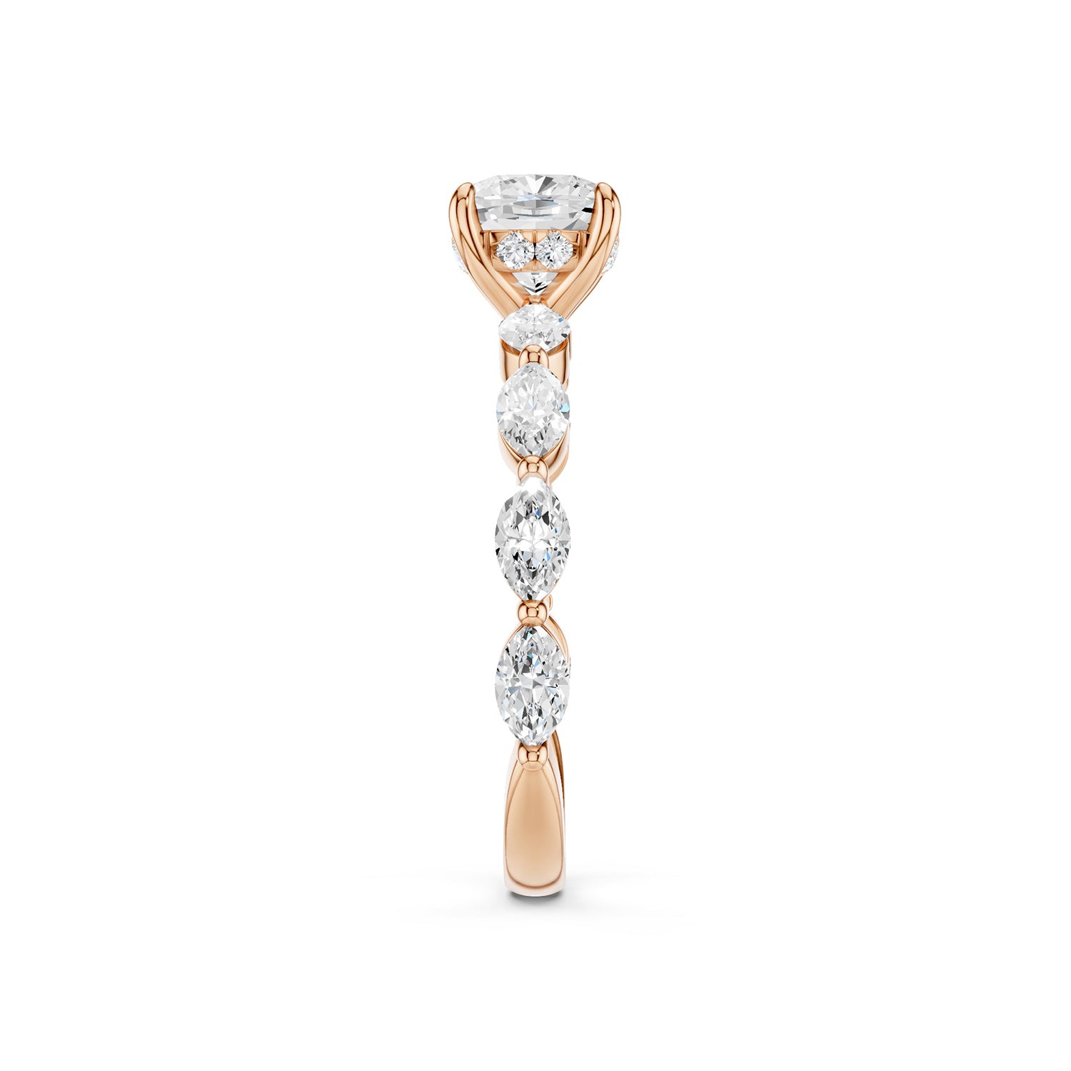 Step into a world of Cushion-Marquise Hidden Halo Diamond Ring. At its heart rests a radiant cushion-cut lab-grown diamond, perfectly framed by a discreet hidden halo that illuminates every subtle movement. Flanked by marquise-shaped diamonds a. . . Read More