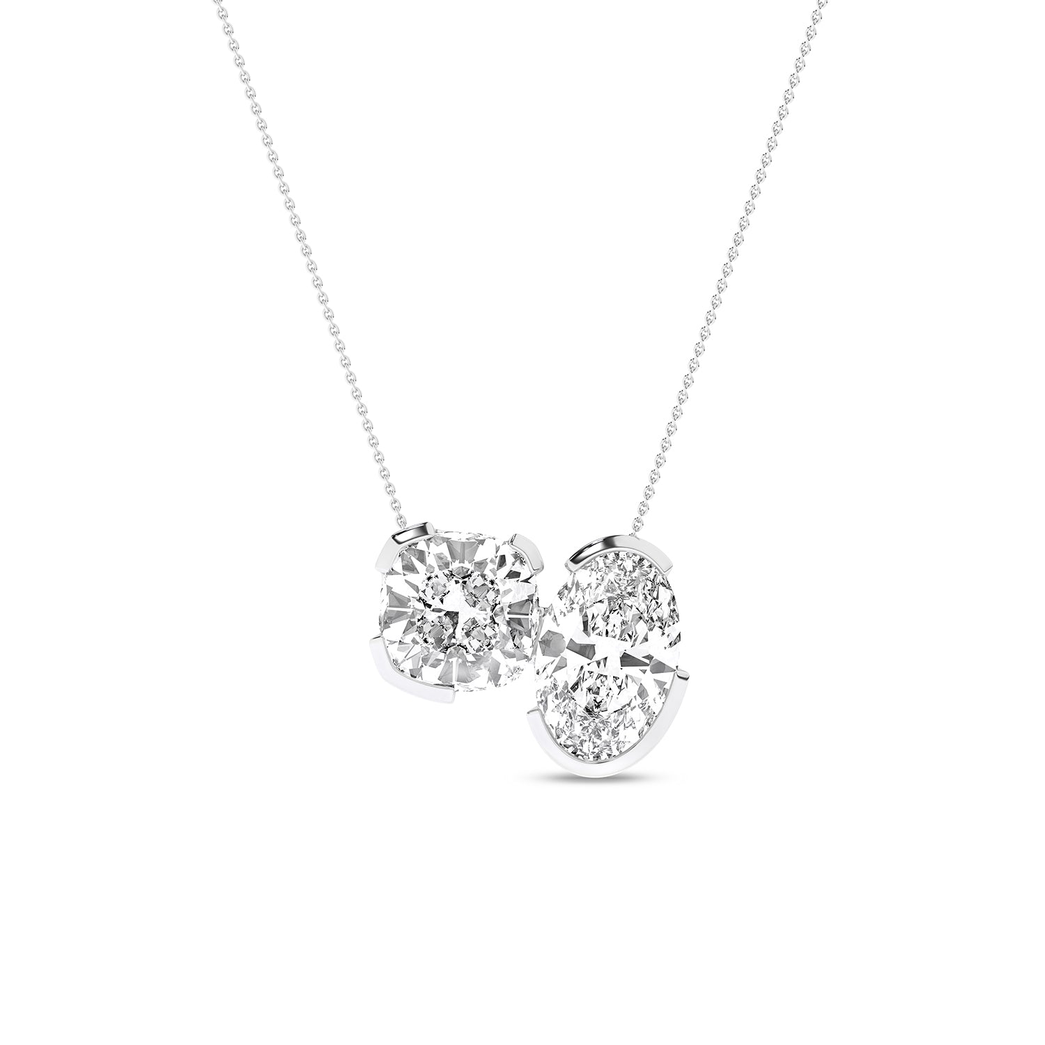 The centerpiece of this Toi et Moi necklace features two magnificent stones: a heart-shaped and a lustrous pear-cut diamond. These diamonds are carefully selected for their exceptional quality, scintillation, and fire, making them a timeless reminder of the love you share. Choose this necklace to commemorate your love and create memories that will last forever.