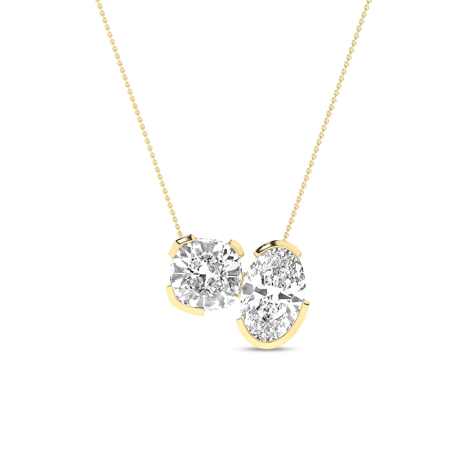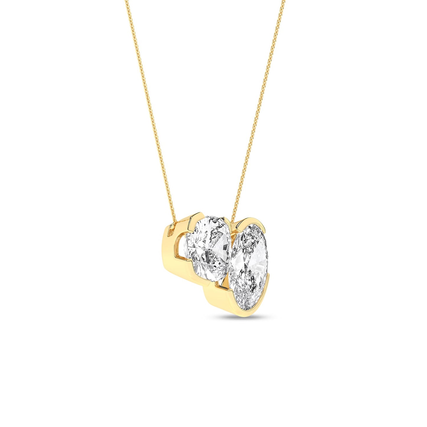 The centerpiece of this Toi et Moi necklace features two magnificent stones: a heart-shaped and a lustrous pear-cut diamond. These diamonds are carefully seleCt.ed for their exceptional quality, scintillation, and fire, making them a timeless reminder of the love you share. Choose this necklace to commemorate your love and create memories that will last forever.