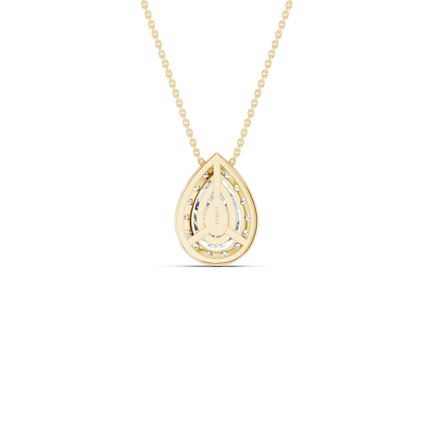 This Dewdrop Halo Necklace features a dewdrop-shaped diamond surrounded by a halo of tiny diamonds. The dewdrop-like setting creates a breathtaking visual experience, making this diamond pendant necklace perfect for any occasion, whether it’s a night out or a day at the office. It’s versatile enough to be worn with any outfit, from casual to formal.