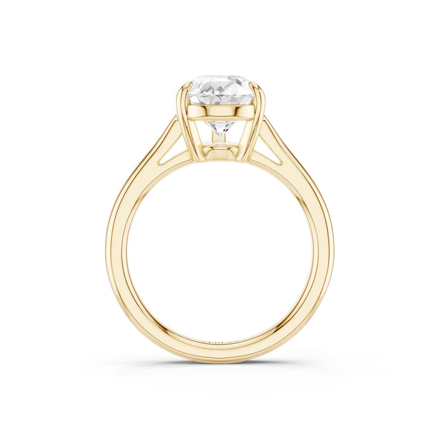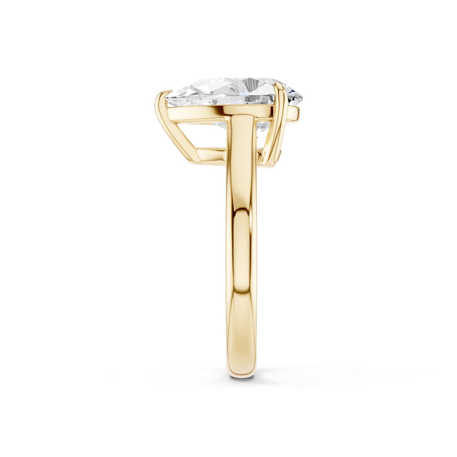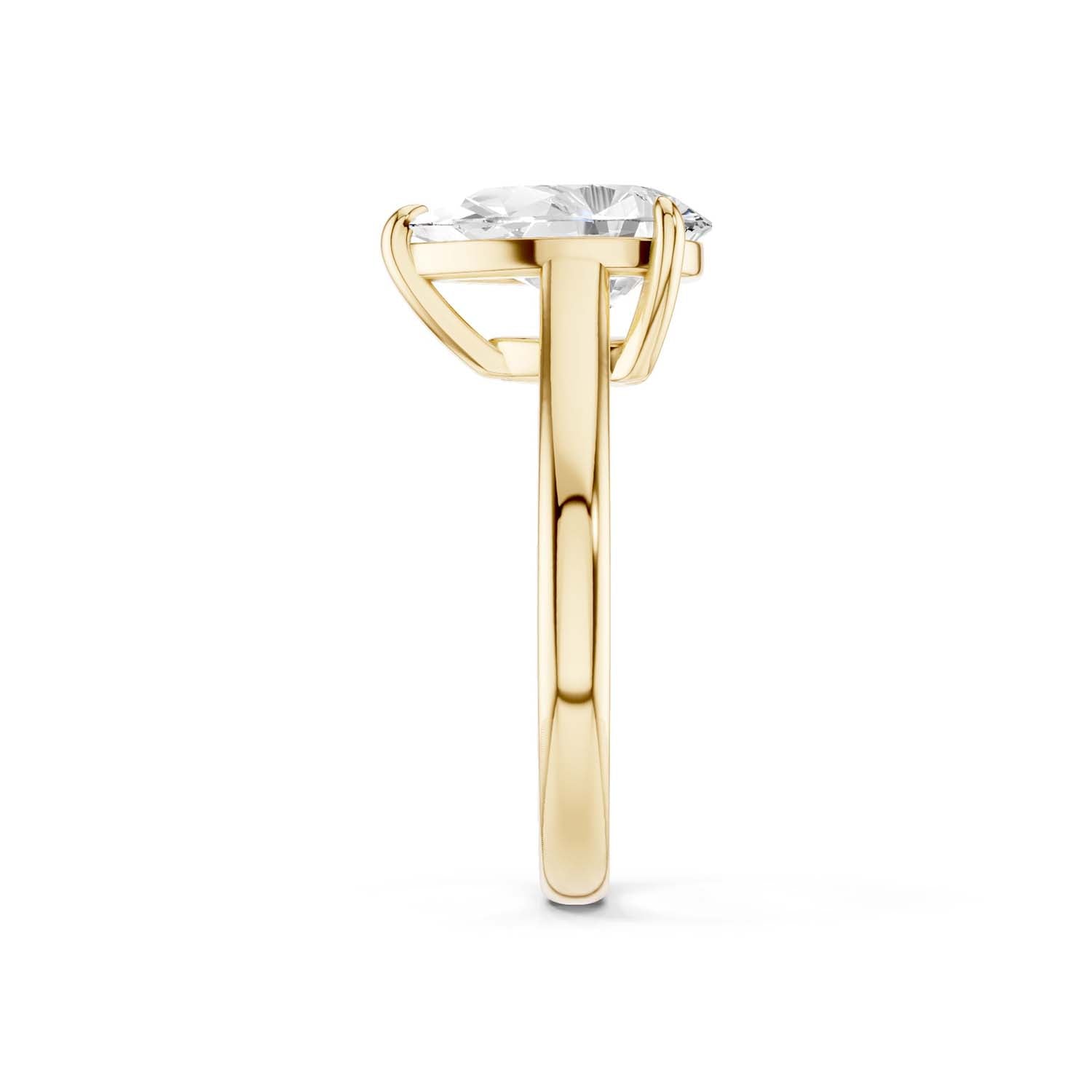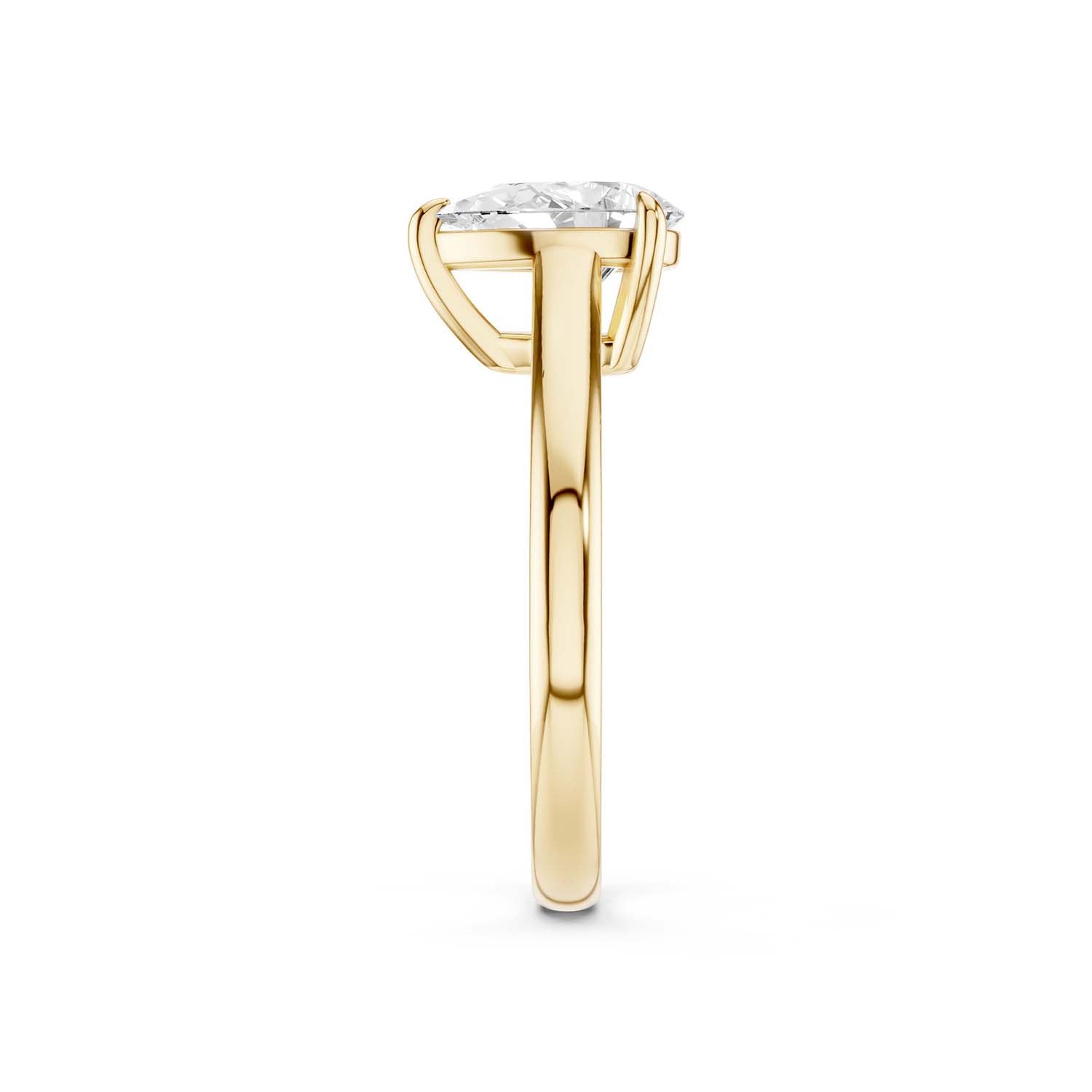 This elegant lab-created diamond solitaire ring features an open basket with three claw prongs that cradle the center dewdrop shape diamond. The fine gold band adds to the classic look of the design.