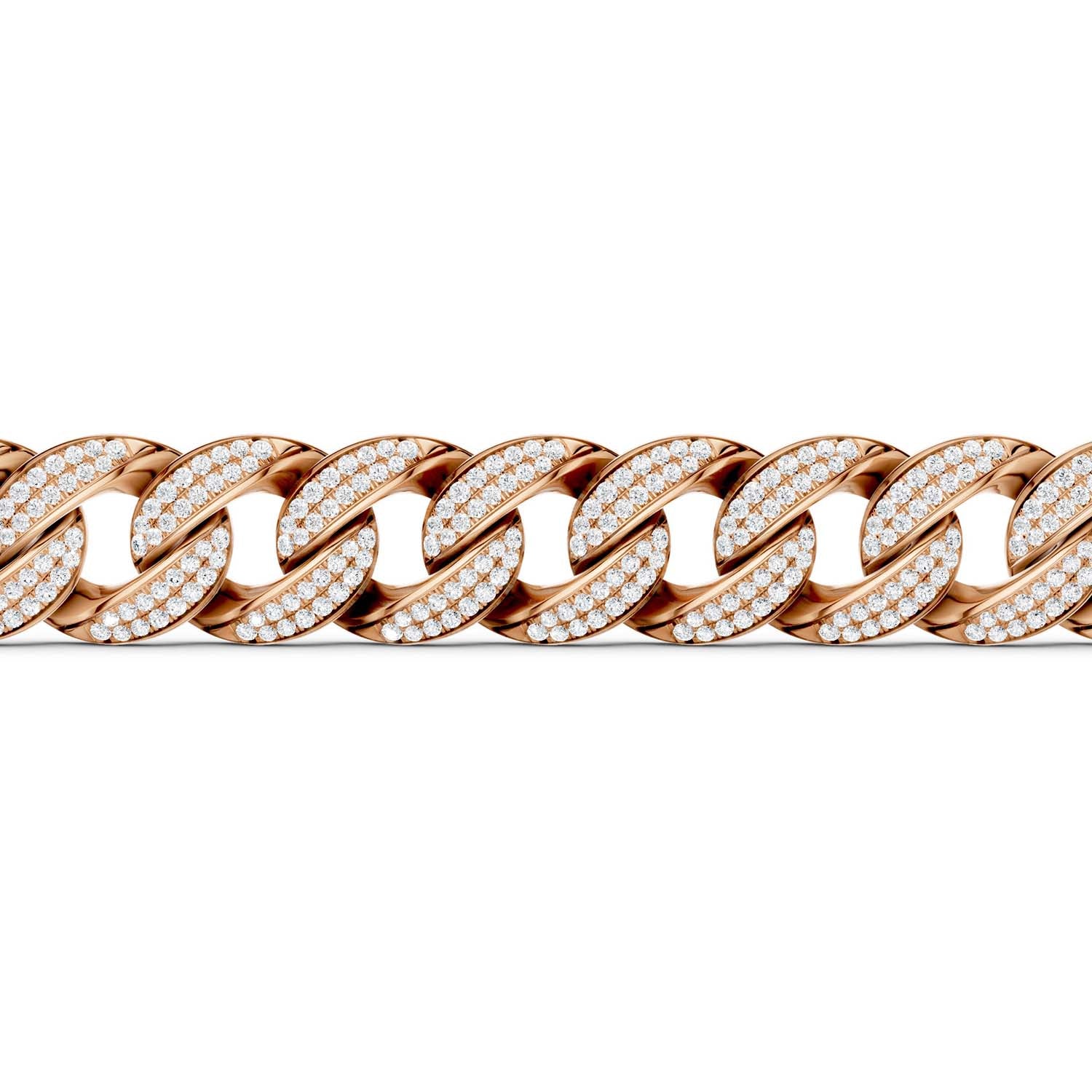 This Diamond Cuban Link Bracelet showcases a meticulously crafted curved Cuban link chain that gracefully wraps around your wrist. Each link is adorned with a radiant round diamonds, creating a continuous shimmer that catches the eye and elevates your every look. This diamond-cut bracelet stands as the epitome of a solitary style statement, exuding both strength and elegance with a distinct touch that sets it apart.