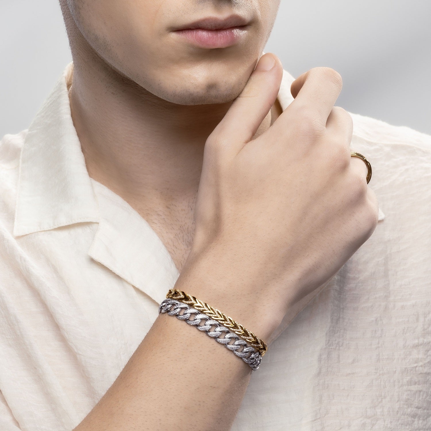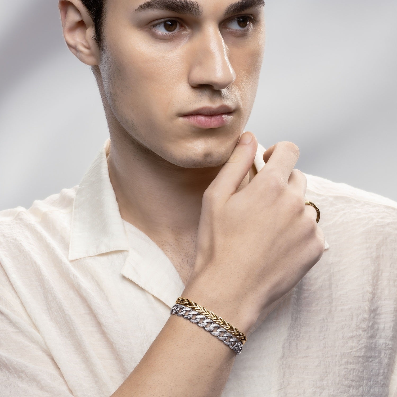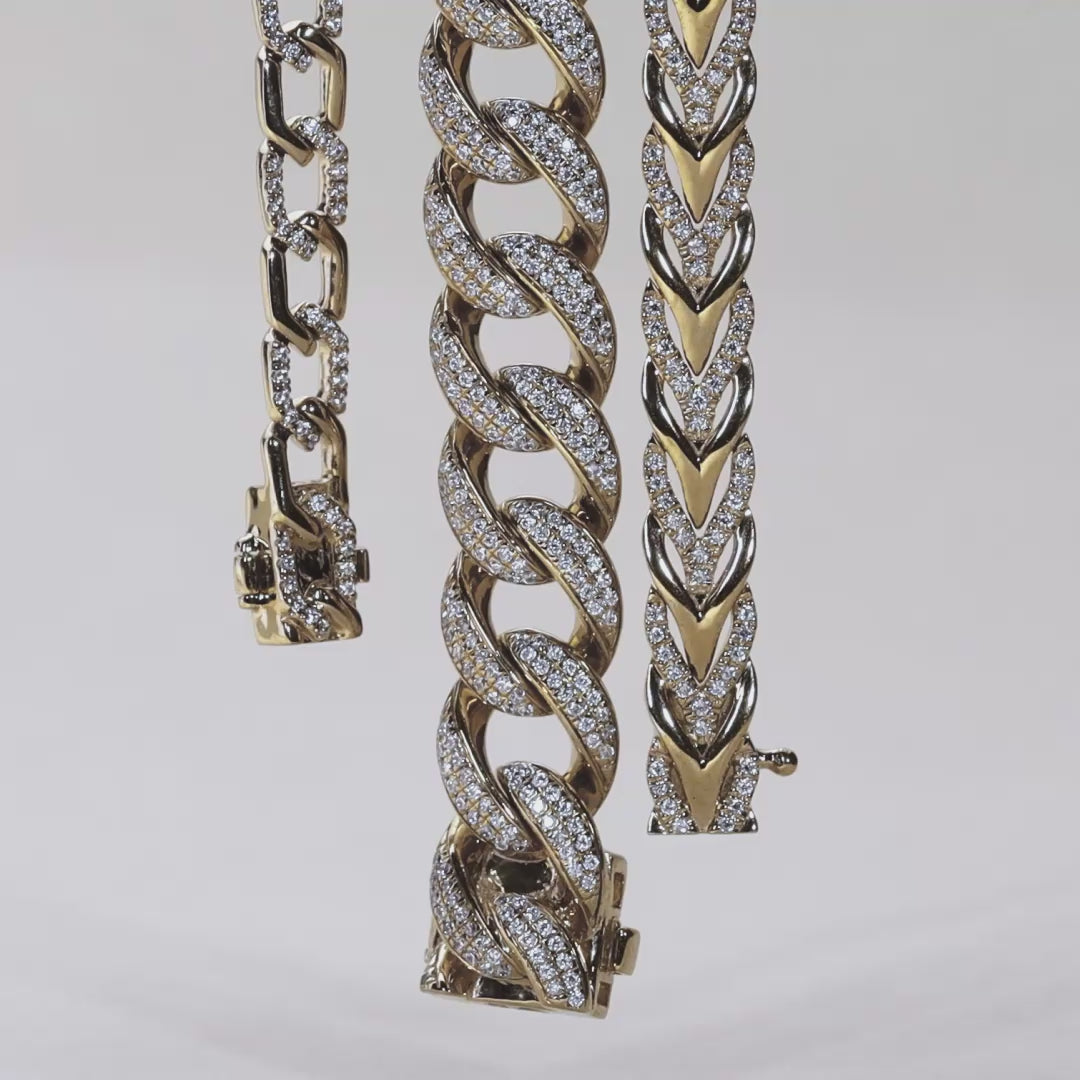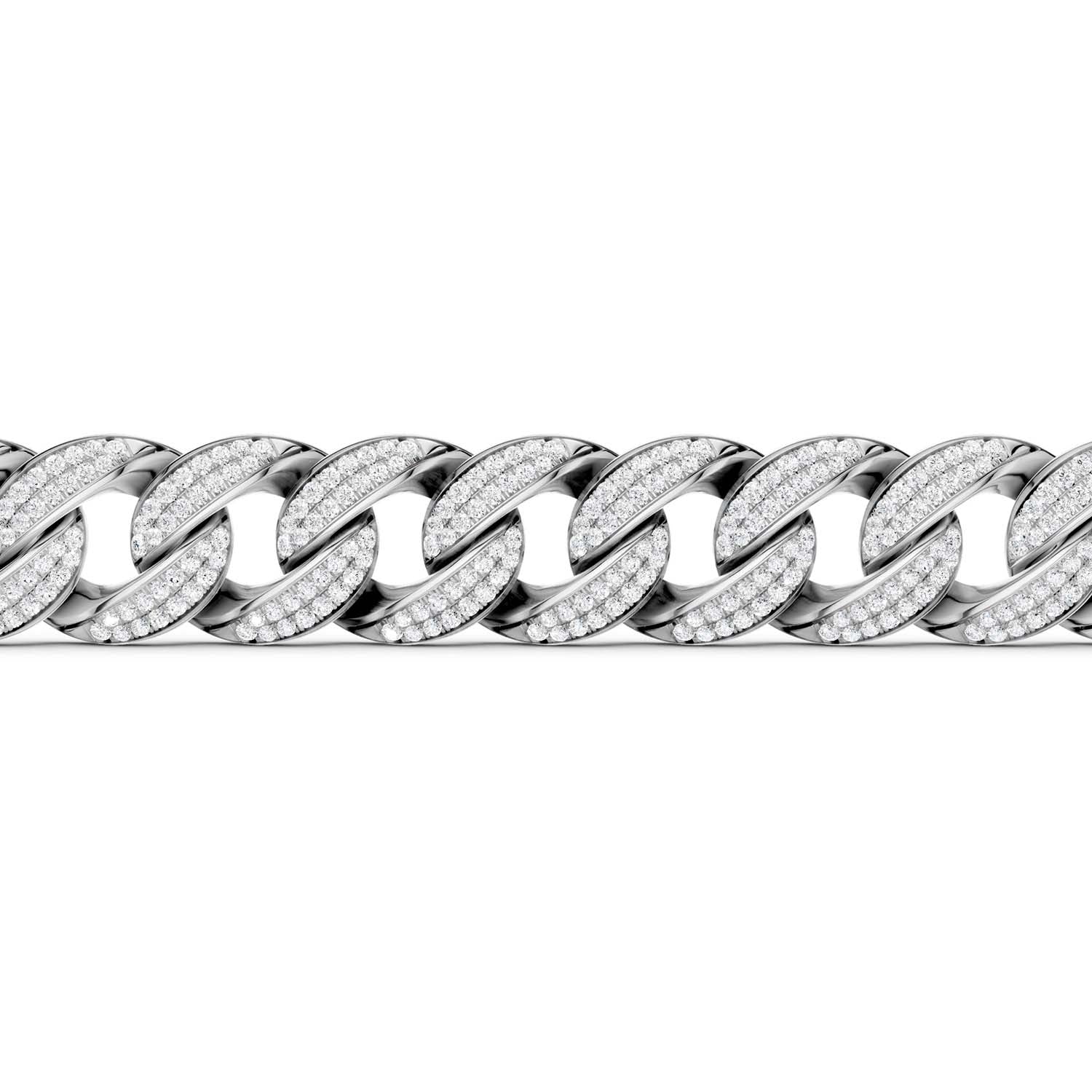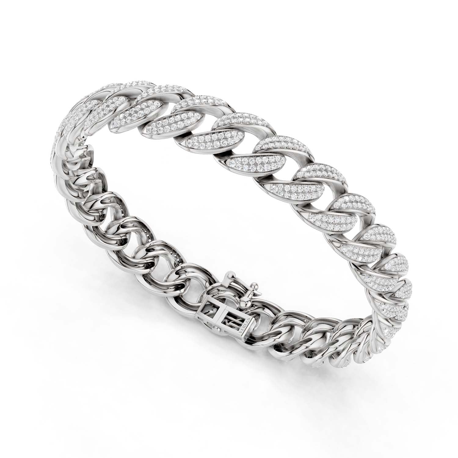 This Diamond Cuban Link Bracelet showcases a meticulously crafted curved Cuban link chain that gracefully wraps around your wrist. Each link is adorned with a radiant round diamonds, creating a continuous shimmer that catches the eye and elevates your every look. This diamond-cut bracelet stands as the epitome of a solitary style statement, exuding both strength and elegance with a distinct touch that sets it apart.