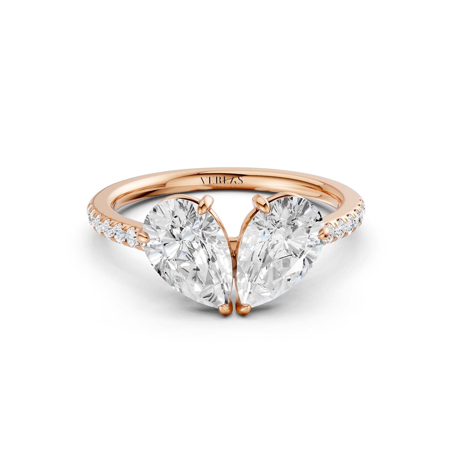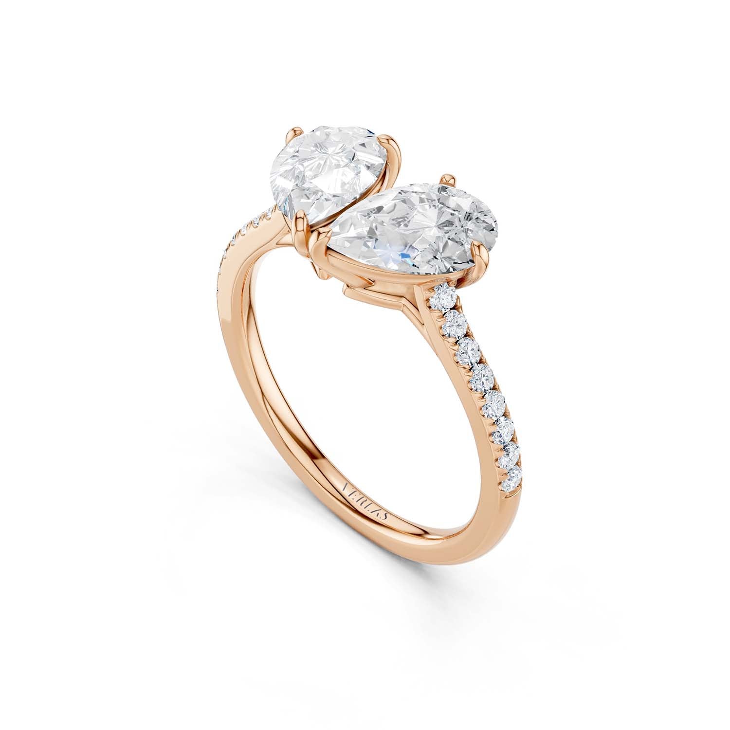 This Toi et Moi ring beautifully encapsulates the essence of two souls intertwined in an inseparable embrace. Gracefully designed, this ring features two beautiful pear-shaped diamonds that come together to form a heart shape and is delicately set in a band of lustrous round diamonds.